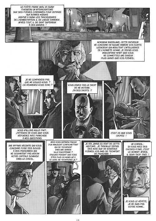 Une excellente idée de départ, avec une lontaine -mais réelle- base historique puisque Baudelaire fut LE grand traducteur de Poe (il ne fut cependant pas le premier). Il a beaucoup été dit, et il sera encore dit davantage sur la corrélation de ces deux géants de la littérature (encore qu'à mes yeux l'un est quand même plus grand que l'autre, mais ce n'est pas le sujet !).BDGest 2014 - Tous droits réservés