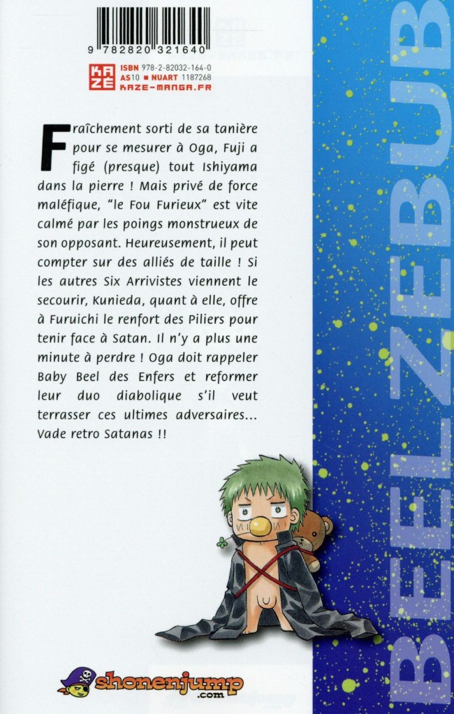 Résumé: Fuji se présente devant Oga après avoir changé en pierre tous les élèves d'Ishiyama ! Oga, qui a renvoyé Baby Beel en enfer, n'a plus aucun moyen pour résister à Fuji. Les six arrivistes et les piliers font bloc pour protéger Oga, mais Fuji bien aidé par la force maléfique de Satan est irrésistible. Oga parviendra-t-il à renouer ses liens avec Baby Beel ?