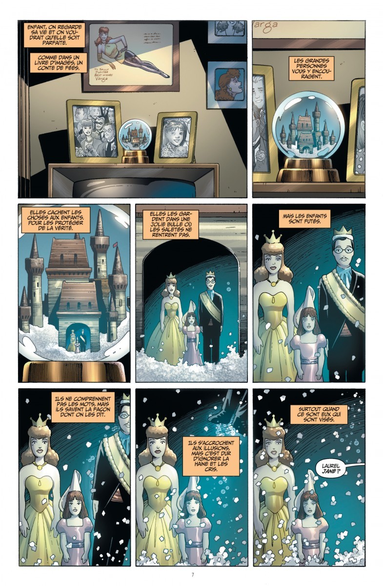 Je vous ai dit à quel point j'adore Darwyn Cooke et Amanda Conner? (Achetez Power Girl, au fait!). Nous suivons la crise d'adolescence de Laurie Jupiter essayant de fuir une mère envahissante qui la forme à prendre sa succession et à fuir les hommes. La fugue en quête de liberté au pays du flower power va bientôt se transformer en descente aux enfer des jeunes hippies naïfs. Donc, c'est très beau et charmant. C'est un pu là le problème. Le style Bubble Gum d'Amanda échoue dans la noirceur, et ce que Cooke réussit sur Minute Men, il le rate sur Silke Spectre. Pas un moment d'inquiétude réelle pour la donzelle, même dans les moments les plus sordides où le pire pouvait lui arriver! Non que craindre sa mort soit l'enjeu du récit, mais un minimum de frisson ou une autre émotion quelconque pour le personnage n'aurait, pour moi, pas été de trop. Là, c'est électro-cardiogramme plat. Une erreur de casting, donc, car je pense qu'avec un autre dessinateur, ça aurait pu être plus palpitant. Berjemo, par exemple. Je vous ai dit à quel point je n'aime pas Berjemo, normalement? Dommage...BDGest 2014 - Tous droits réservés
