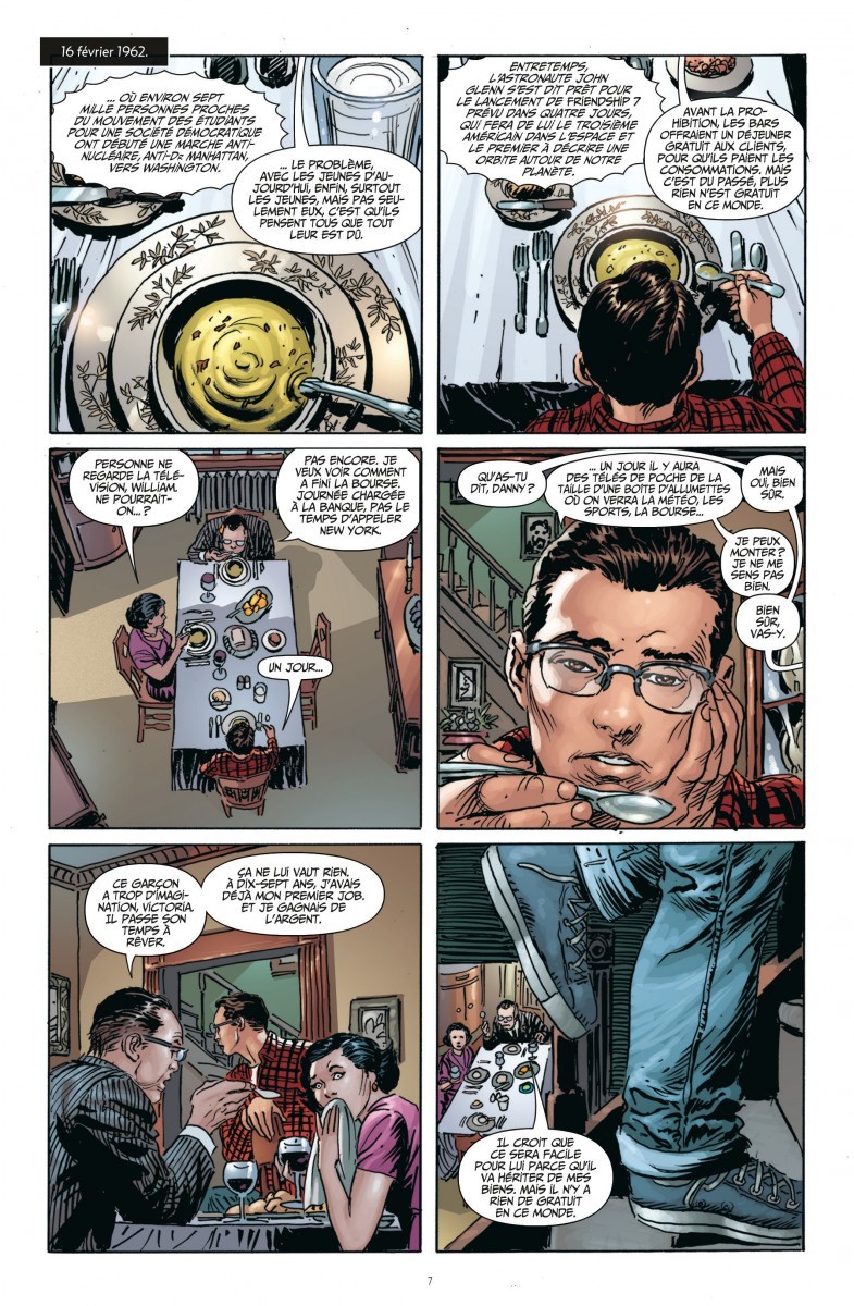 N° 6 de la série des Before, on sait que le Hibou est un super-héros les plus attachants car très gentil avec un bon fond. Son histoire d’amour avec Laurie avait ému le public autant que son engagement progressif en sortant de sa retraite. L’autre particularité est qu’ils sont deux personnes à avoir enfilé ce costume à savoir Hollis Mason (des Minutemen) et son successeur Daniel Dreinberg. En l’occurrence, on va surtout s’intéresser au second hibou. Je peux dire que c’est l’un des titres les plus réussi de la saga Before Watchmen car on découvre un peu mieux ce personnage qui était apparu un peu fade et assez complexé dans l’œuvre originale. J’ai beaucoup aimé sa relation amicale avec Rorschach qui s’associe avec ce dernier ayant pour point commun une enfance malheureuse. Il y a également sa relation sentimentale avec une femme de la nuit surnommé la dame du crépuscule ou la reine du vice. Elle le mènera au doigt et à la braguette. On retrouve pour la quatrième fois la même scène concernant la réunion provoquée par le capitaine Métropolis qui voulait former le groupe des vigilants. On sait que cela sera une tentative avortée du fait de la violente réaction du Comédien. Cela commence à faire réellement répétition. Je regrette également le fait qu’il y a une absence totale de volatiles ou de quelque chose qui rappellerait l’ornithologie. Ce n’est qu’un petit détail mais cela aurait apporter de la crédibilité dans la cohérence de l’œuvre. A noter que Laurie Jupiter possède bien un oiseau en cage dans sa chambre. Je chipote bien sûr. On a également assez reproché à ce titre de faire la part trop belle au personnage de Rorschach qui joue d’ailleurs un meilleur rôle que dans son propre one shot. C’est dire ! Il y a du vrai mais il faut le voir comme une imbrication dans la mesure où ces deux personnages vont souvent collaborer ensemble. Dans Watchmen, le Hibou n’hésitera pas à faire sortir de prison son compagnon. D’où il fallait bien expliquer les prémices de cette relation. Outre ces défauts, ce tome a énormément de qualité à commencer par une excellente toile de fond qui rappelle le bouleversement politique et social des années 60 et 70. Puis, il y a surtout ce traumatisme lié à l’enfance et à la violence sexuelle du père envers la mère. On arrivera mieux à cerner ce personnage qui semble si enfermé. On verra également l’origine du désaccord entre le Hibou et Rorschach qui n’ont pas les mêmes méthodes pour venir à bout du crime. J’ai également trouvé les dessins assez agréables avec une prestation assez correcte et une colorisation adaptée. Bref, nous avons là le plus humain de ces super-héros et pour notre plus grand plaisir. Note Dessin : 4/5 – Note Scénario : 4,5/5 – Note Globale : 4.25/5Le 16/06/2019 à 00:43:01