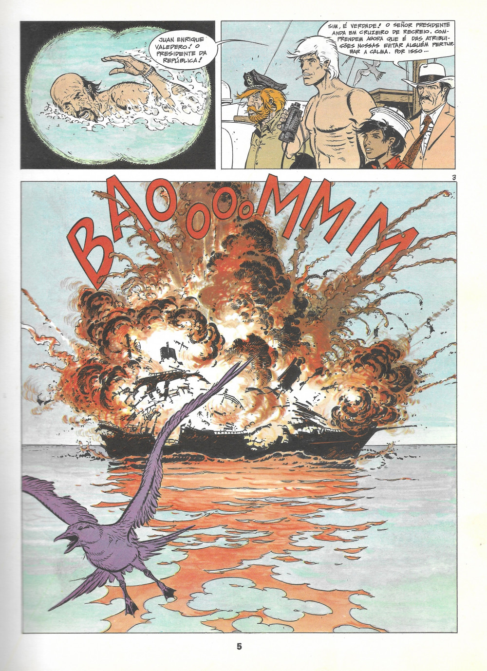 Résumé: Enquanto o Cormoran navega placidamente ao largo de Monteguana, Bernard Prince, Barney Jordan e Djinn assistem à violenta explosão do iate do Presidente daquela república equatorial, Juán Enrique Valadero, o qual escapa miraculosamente com vida a esta catástrofe, juntamente com os seus dois guarda-costas. Recolhido pelos nossos heróis, Valadero ouve pela rádio que o poder acaba de ser tomado pelo General Mendonza e rapidamente se dá conta de que foi alvo de um atentado e de que um golpe de Estado está em curso no seu país. Sem hesitar, o Presidente requisita o Cormoran e a sua tripulação para tentar alcançar a capital, Castillo Blanco, pelo rio que atravessa a inóspita selva de Monteguana. Os perigos são múltiplos e os novos detentores do poder não parecem dispostos a ceder facilmente...