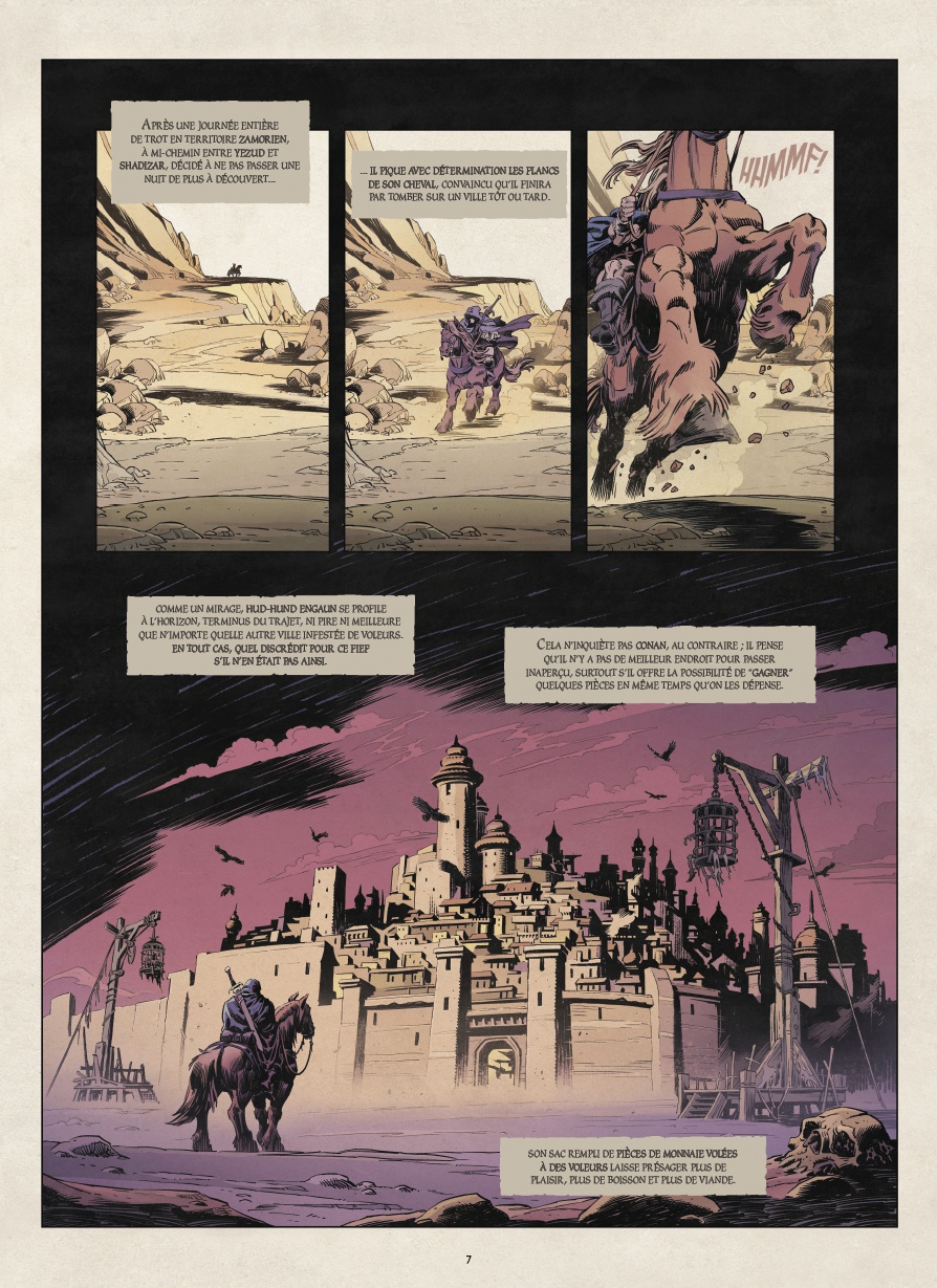 Résumé: Dans cette aventure inédite, Conan qui n'est pas encore roi, accepte une mission simple : délivrer la fille d'un chef de clan, soi-disant enlevée par un rival. Mais dans les ruelles fétides de Hud-hund Engaun, les apparences sont trompeuses...