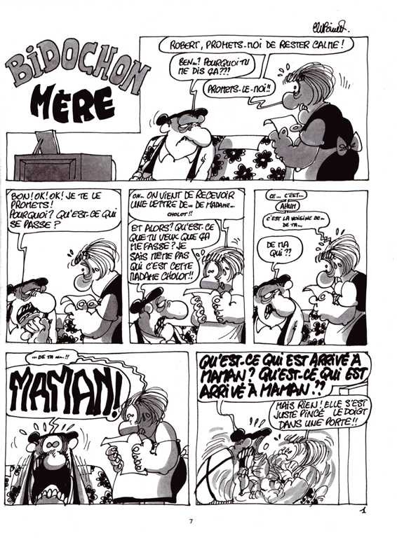 Résumé: L'histoire est simple : partis la voir en week-end, Robert et Raymonde se retrouvent séquestrés par Madame Bidochon mère, victimes de sa tyrannique affection. C'est l'occasion qui manquait à BINET pour nous dévoiler quelques piquants secrets de famille... Mais la vraie saveur de ce quinzième tome, c'est de découvrir que la mère Bidochon est surtout... la belle-mère de Raymonde ! Ce nouvel album réjouira tous ceux et toutes celles qui ont dans leur entourage une mère ou une belle-mère... mais rappelez-vous, les Bidochon, c'est les autres !