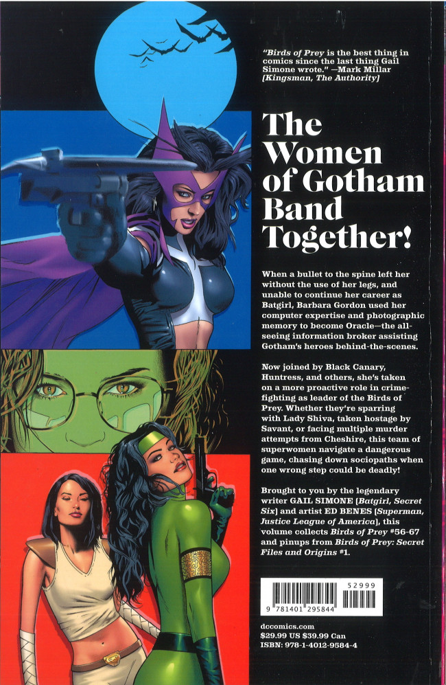 - Info édition : Pas de DL. This volume collects Birds of Prey #56-67 and Pinups from Birds of Prey: Secret Files and Origins #1