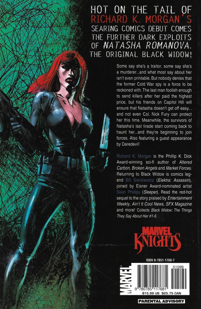 Résumé: The last man foolish enough to send killers after her paid the highest price, but his friends on Capitol Hill will ensure that Natasha doesn't get off easy...and not even Col. Nick Fury can protect her this time. Meanwhile, the survivors of Natasha's last tirade start coming back to haunt her...and they're beginning to join forces.