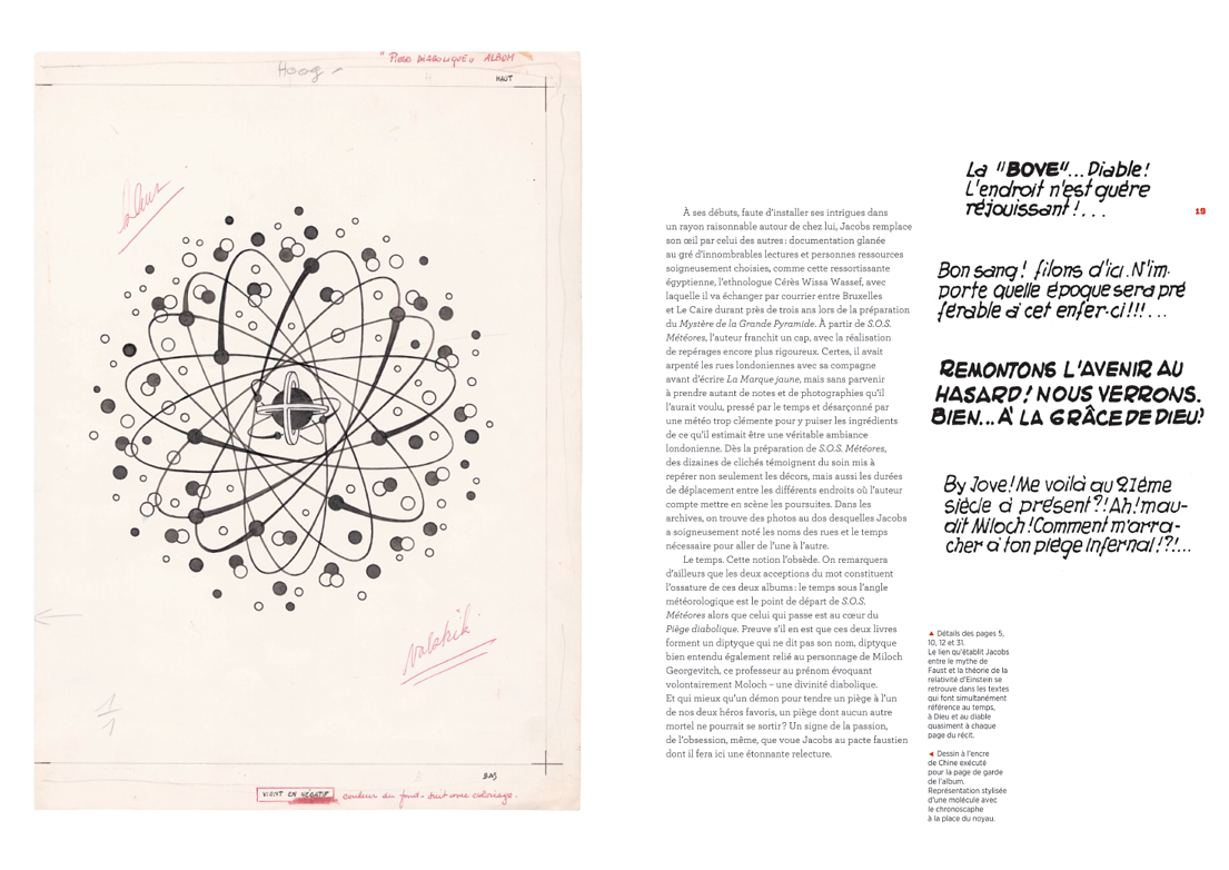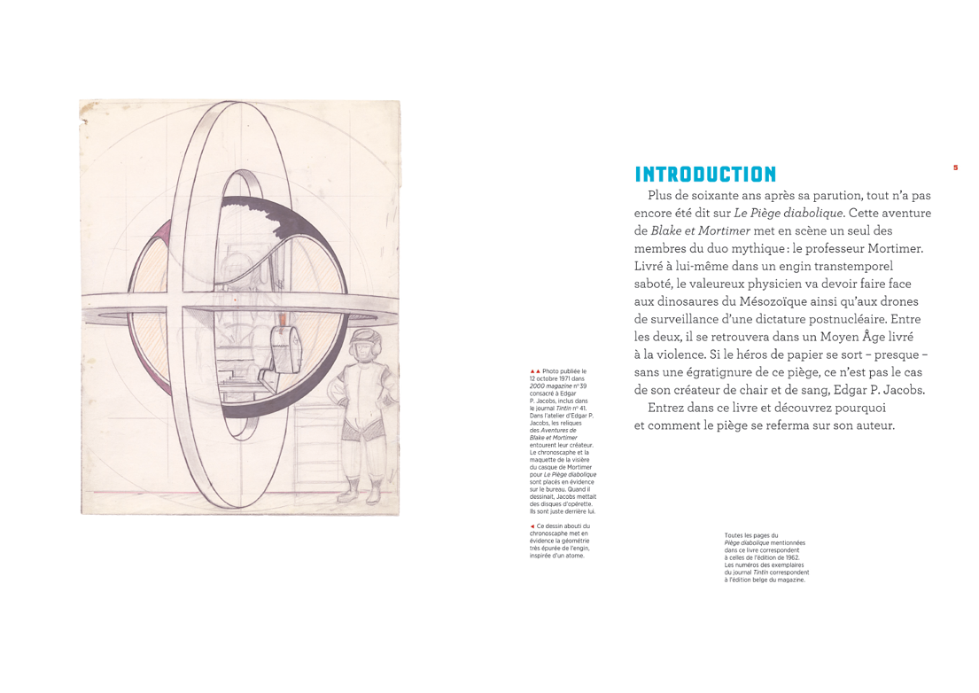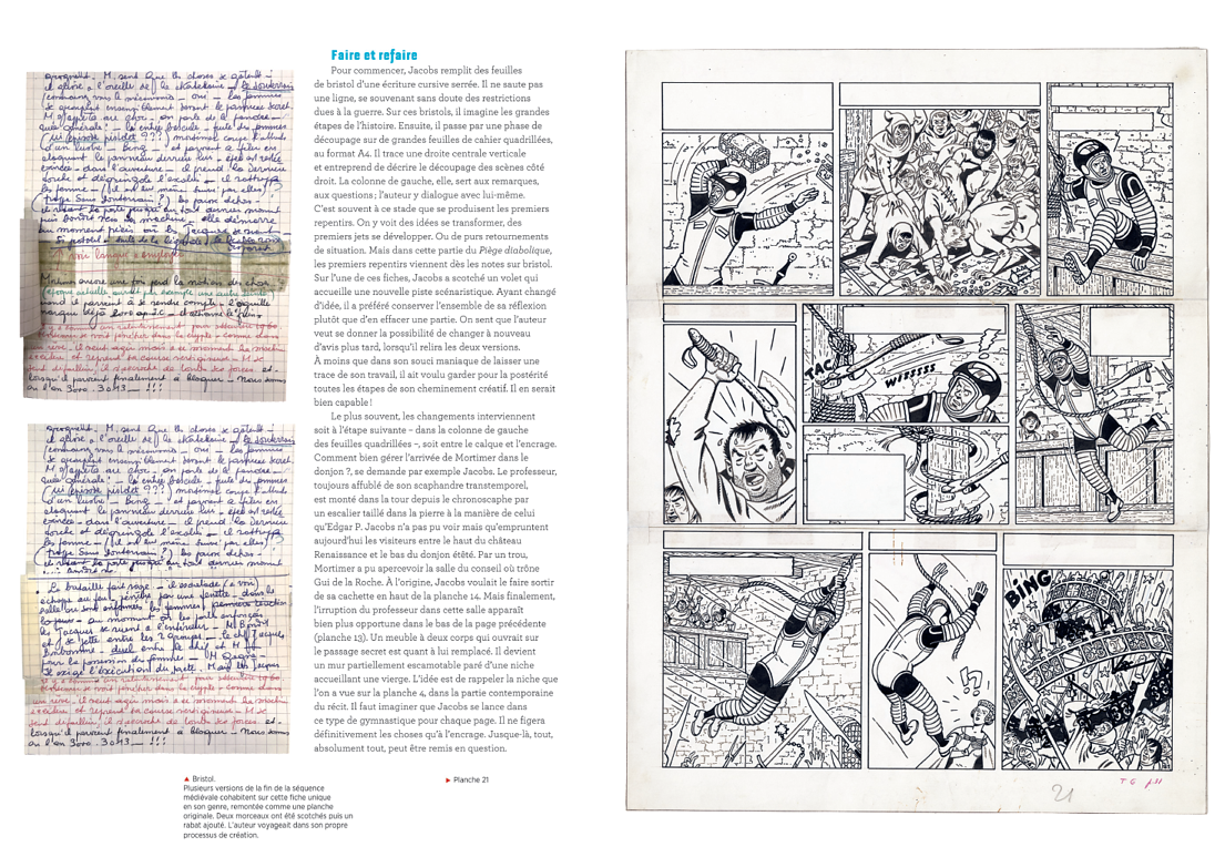 Grâce aux précieuses archives laissées à la Fondation Jacobs par l'auteur de Blake et Mortimer de son vivant, plongez dans les coulisses de la création du Piège diabolique. Entrez dans l'atelier du Bois des Pauvres et placez-vous juste au-dessus de l'épaule du maître pour découvrir les secrets de fabrication d'un inventeur de mondes obsédé par la perfection, piégé par sa propre création.
