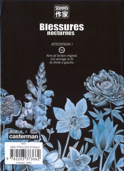 C’est de l’expérience réelle du professeur Osamu Mizutani et du talent artistique de Seiko Tsuchida, remarqué pour son Under the same moon, qu’est né Blessures nocturnes. Débutant par l’histoire de Masashi, accro aux diluants, présentée comme étant à l'origine de la vocation de Mizutani, l’ouvrage narre les destins tragiques d’adolescents en perdition, victimes de la drogue, de la prostitution et de la violence qu’elle vienne de leurs proches ou de leurs fréquentations. Il met en avant la cruauté d’un monde qui ne se retourne plus sur une jeunesse malade, gangrenée, bien que pleine d’espoirs devenus autant de désillusions. Les enfants en cours de désintégration sont les véritables acteurs des trois récits qui composent ce premier tome, le professeur, devenu patrouilleur nocturne, n’apparaissant que comme un observateur qui donne quelquefois le coup de pouce décisif et qui est toujours à l’écoute. Le sujet est bouleversant et le ton utilisé par Seiko Tsuchida, tout en retenu, ne manque pas de toucher et de sensibiliser sur cet enfer qui commence souvent par une simple différence. Il est appuyé par le réalisme sobre du graphisme qui, sans en faire trop, dépeint toute la noirceur de chaque situation particulière. Par ailleurs, la plupart des scènes se déroulant de nuit, le lecteur peut ressentir toute la solitude et les affres qui assaillent Masashi, Shita et Yugô lorsque le jour rassurant cède la place aux ténèbres environnantes faisant écho à leur détresse intérieure.