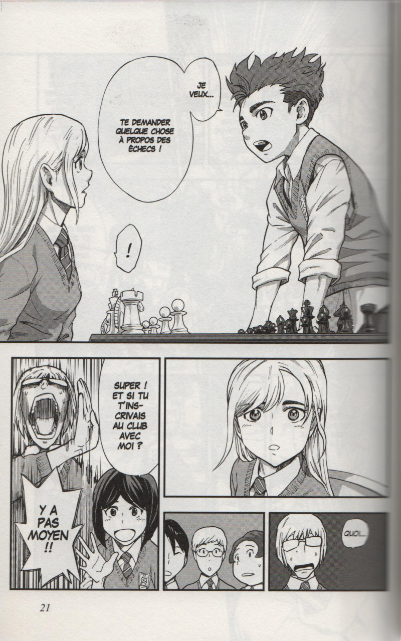 J'ai été parmi les premiers spectateurs à découvrir « le jeu de la dame » sorti en Octobre 2020 sur Netflix. J'ai apprécié cette mini-série comme des millions d'autres à travers le monde. Par la suite, on apprenait que les ventes de jeux d'échecs ont véritablement bondi. Ce manga, sorti quelques mois plus tôt en janvier 2020, tombait à point nommé pour surfer sur cette vague commerciale. Evidemment, le récit est différent mais il contient les mêmes ingrédients à savoir un novice qui découvre le monde des tournois de jeux d'échecs et qui devient très fort après avoir essuyé quelques défaites. Bon, je n'irai pas jusqu'à dire que ce manga atteint le niveau du jeu de la dame mais il se débrouille plutôt pas mal. On aura droit à une explication des plus basiques sur le fonctionnement de ce jeu qui n'est pas si populaire que cela au Japon mais qui se développe tout de même. Il y a bien sûr l'ombre de Garry Kasparov qui signe la post-face. Son objectif est de démocratiser le jeu d'échecs de toute les façons possibles et même en passant par un média tel que le manga. On ne présente plus Garry Kasparov qui a d'ailleurs fuit le régime de Poutine pour se réfugier aux Etats-Unis et qui est considéré comme l'un des meilleurs joueurs de l'histoire. Il a même combattu plusieurs fois l'intelligence artificielle lors de parties qui sont restées assez célèbres. Bon, il faut savoir que ce manga est supervisé et parrainé par le champion du monde lui-même. On apprendra des choses assez intéressantes sur ce jeu qui vient à l'origine de Perse et qui est désormais reconnu comme un sport cérébral par le Comité internationale olympique. A noter que le blitz qui est le titre de la série signifie jeu éclair, cadence rapide. Hitler lui-même s'en est inspiré lors du début de la Seconde Guerre Mondiale. Bref, un manga qui donnera envie de jouer aux échecs soit en ligne, soit sur un vieil échiquier. La partie ne fait que de commencer...BDGest 2014 - Tous droits réservés