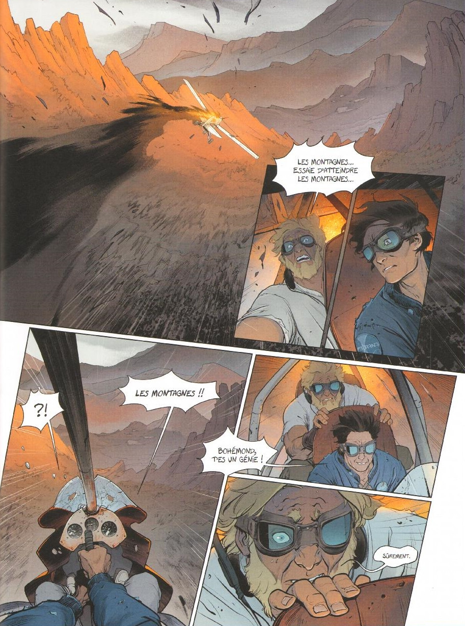 Dans ce deuxième tome de Bomb X, les protagonistes affrontent des menaces venues du désert, mais l’intrigue peine à maintenir la dynamique du premier album. Malgré des compositions graphiques audacieuses et une ambiance riche, le récit s’enlise parfois dans des artifices scénaristiques. Les amateurs de mondes post-apocalyptiques trouveront néanmoins de quoi apprécier cet univers visuellement saisissant. Lire la critique complète : https://www.alphabulle.fr/bomb-x-2-entre-orages-dissipes-et-conflits-enlises/Le 29/09/2024 à 12:04:42