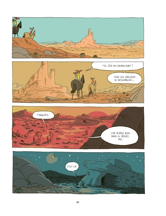 Sortie à l’automne 2018, le premier volet fait reposer son intrigue sur la bêtise d’un antihéros (Chris). Partant à la recherche de l’endroit où il a lui-même enseveli les fruits de son larcin, il rencontre fortuitement une gamine (Lise). Cette dernière pourchasse un bandit, en vue de se venger et de s'enrichir d'une rançon. En alliant ces figures, le script adjoint un autre but à la chevauchée tout en assurant d’agréables interactions. Au fil des pages, les péripéties et les bons sentiments s’entremêlent jusqu’à la conclusion de l’équipée provoquée par la fougueuse adolescente. Un happy end réjouissant pour une lecture divertissante. A contrario, ce second titre se décompose en deux parties distinctes. Il s’ouvre d’abord sur un flash-back qui a vocation à donner de la consistance aux protagonistes, puis se poursuit par une lutte chamanique contre l’addiction de Chris. Véritable épisode de transition, cette continuité manque de sel alors que l’analepse en elle-même contient le matériel essentiel à l’écriture d’un album complet satisfaisant. D’autant que le tempérament de Burt est bien différent de celui de son frangin et que sa cavalcade procure de belles perspectives iconographiques. En complément, le chapitre suivant nécessite également un traitement scénaristique plus approfondi. À tel point que la fin de ce tome est abrupte et que la balade se prolonge dans un opus à venir.