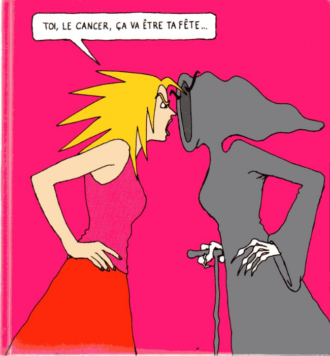 Après "sex and the city", voila "cancer and the city”! Pourquoi pas après tout ? C'est l'histoire vraie d'une illustratrice new-yorkaise de 43 ans qui est au top de sa carrière, qui va bientôt se marier pour la première fois avec l'homme de sa vie et qui apprend qu'elle est atteinte d'un cancer du sein. Terrible nouvelle ! Nous allons dès lors suivre cette femme très tendance dans le combat contre cette maladie. L'intention est louable car elle permet à tout un chacun de comprendre ce que vît un malade atteint avec tous ces lourds traitements comme la chimiothérapie ainsi que toute l'angoisse des examens et des résultats. Pas très gai comme lecture direz-vous. C'est traité avec beaucoup de légèreté d'une manière très pétillante qui plaira vraisemblablement à un public féminin. J'ai trouvé particulièrement énervant la personnalité même de cette fashion-victime complètement branchée sur une planète hype. On pourrait s'étrangler de rire quand elle nous apprend comme une mauvaise nouvelle qu'elle n'a pas de Mutuelle pour couvrir l'ensemble de ces frais. Fini les séances chez le dermatothalassothérapeute, le dernier sac hyper à la mode ou la centaine de chaussures, sans oublier un appartement dans Manhattan juste pour ranger quelques affaires qui traînent. Mieux encore : malgré l’angoisse liée la maladie, elle considère cette situation comme "le pire instant" qu’elle ait vécu !!! Finalement, maman et papa mettront la main à la poche. Pas d'inquiétude ! Le milieu dans lequel évolue cette femme est hypra-riche et superficiel, vous l'aurez compris. Elle croit que la maladie va l'aider à surmonter cette artificialité mais le lecteur que je suis ne le ressent pas ainsi. Nous sommes à New-York dans un milieu carnassier où les femmes n'hésitent pas à tenter de voler son gentil mari devant son nez en plein repas gastronomique dans un resto hyper branché en multipliant les tentatives de charme les plus audacieuses ("on va faire un tour dans ta Maserati ? Appelle-moi si tu veux une relation saine! Je peux tirer sur ton cigare ?" etc...). Elle a de la chance dans cette épreuve car elle est entourée par des amis et une famille merveilleuse qui n'hésite pas à la soutenir. Tant mieux pour elle. Il n'y a pas de jalousie dans ces propos mais je pense à tous ces malades humbles qui sont seuls face à la maladie sans avoir 50 messages sur le répondeur de leur portable après une simple petite opération. Une des principales préoccupations de notre courageuse héroïne est de ne pas perdre ces beaux cheveux blonds, symbole même de l'élégance. Fort heureusement, le nécessaire sera effectué pour que cela n'arrive surtout pas. Pour la morale de l'histoire, tout le monde ou presque sait qu'il faut profiter de la vie tant qu'il est encore temps et qu'il faut se battre quand on est malade. Une partie des bénéfices de l'ouvrage est reversé à un institut qui lutte contre le cancer. Je ne peux pas décemment dans ces conditions refuser d'accorder le conseil d'achat. Et puis et surtout, vous pourrez également faire un jeu de l'oie sur le cancer qui est inclus dans l'ouvrage (véridique !) : "si vous fumez, vous reculez de 7 cases !". Je culpabilise sur le fait que je me trouve un peu immonde d'écrire un avis aussi dur sur une pauvre femme certes un peu garce qui a tout de même souffert de son cancer du sein et qui a fini par le vaincre. Cependant, c'est l'oeuvre que je critique.BDGest 2014 - Tous droits réservés