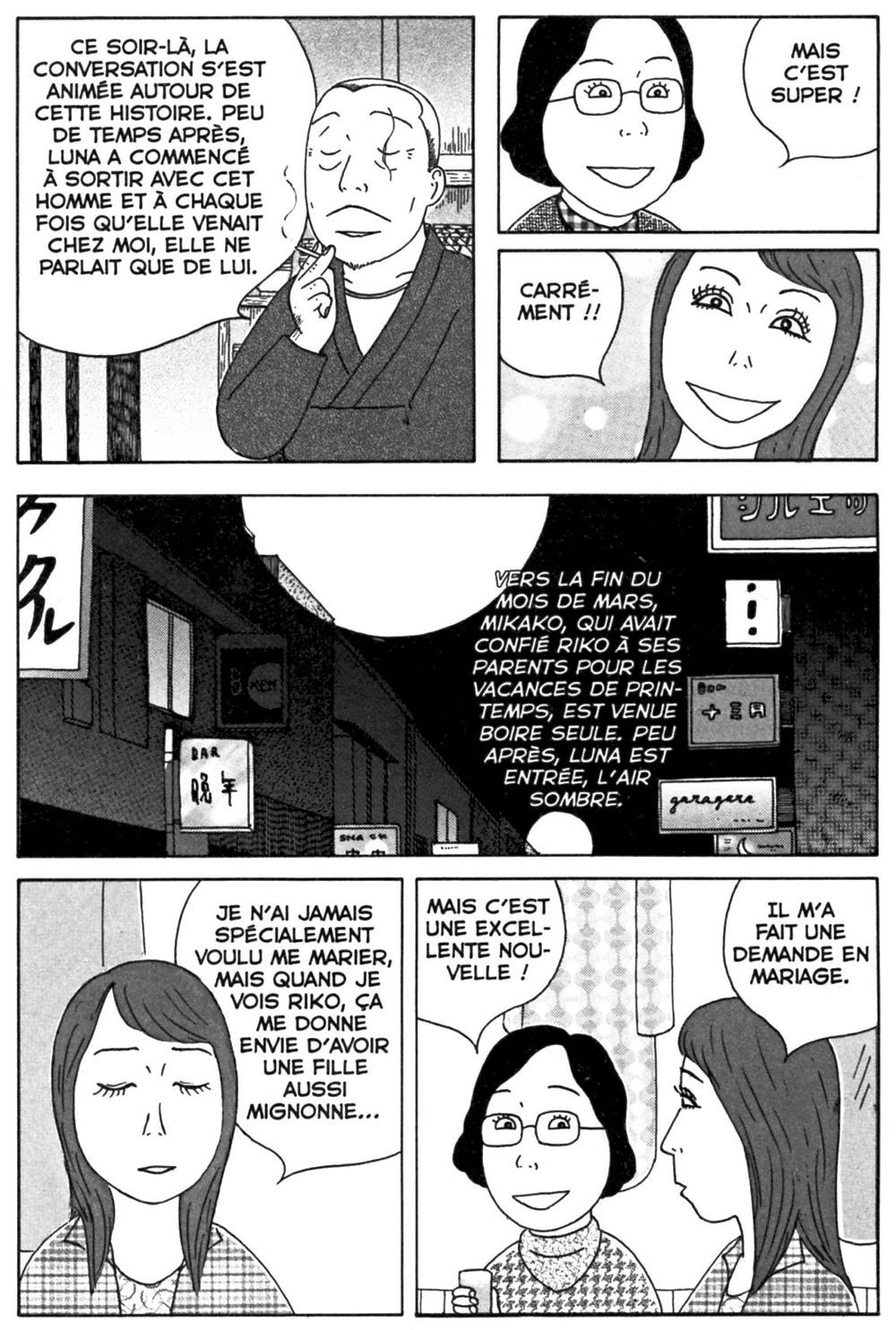 Résumé: Dans ce petit restaurant situé au fond d’une ruelle du quartier de Shinjuku, le patron vous accueille de minuit à sept heures du matin. La carte ne propose que du tonjiru, soupe de miso au porc, ainsi que du saké, mais selon vos envies, on vous préparera à la demande tout ce qu’on est en mesure de vous servir.