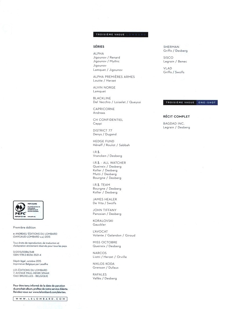 Un excellent épisode, graphiquement très réussi. Un album qui apporte de nombreuses réponses et qui aurait probablement fait une excellente conclusion à cette épatante série ... mais non, Andreas nous prend une fois de plus à revers avec cette étonnante pirouette en dernière page, prolongeant ainsi le mystère et par là-même la série. Où tout cela va-t-il encore nous mener ? On n'en sait rien et c'est tant mieux !