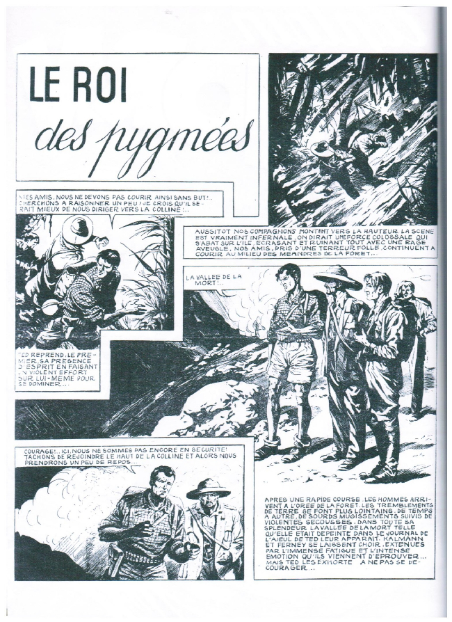L’expédition moderne de Bornos et Horn (Volpe II, si l’on peut dire), est en quelque sorte une reprise de la première, pas plus triste et non moins haletante. Ces nouveaux Robinson, arrivé au Cap en Afrique du Sud, rejoignent l’île sur le boutre d’un pêcheur du cru. Il s’avère très vite que l’île, isolée du reste du monde, abrite toujours des monstres, mais aussi des ‘humanoïdes’ géants et bien évidemment des pygmées. On peut deviner la nature des dangers auxquels seront confrontés nos deux héros. D’autant plus qu’à l’expédition, en plus de Kalman l’assistant, se joint le docteur Ferney grand rival de Bornos et férocement jaloux de ce dernier… Après avoir franchi les premiers obstacles naturels, pour aborder l’île, les compagnons échappent à un incendie de forêt qui provoque la fuite éperdue de nombreux dinosaures, tous plus féroces les uns que les autres. Finalement l’expédition à la chance de découvrir sur l’île, le Roi des pygmées : Juan Alvarez un riche propriétaire argentin. Ce dernier a fait naufrage avec sa fille Hermine sur cette terre inconnue et inhospitalière, couverte en permanence par des nappes de brouillard très dense qui l’empêche d’être aperçue du large...