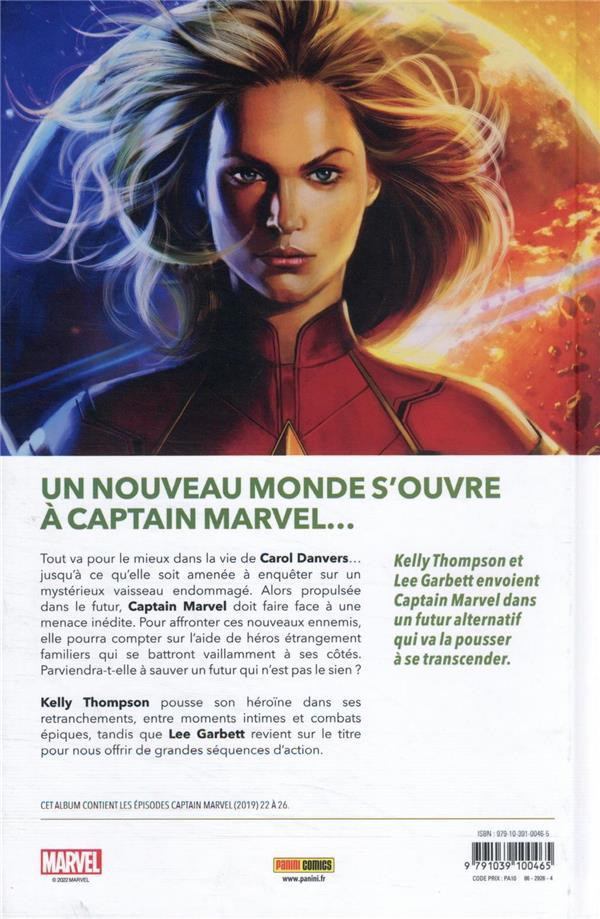 Résumé: Bond dans le futur pour Captain Marvel qui se retrouve transplantée à New York qu'elle doit protéger de l'attaque d'un mystérieux vilain nommé Ove. Qui est-il ? Quels personnages célèbres de l'univers Marvel sont ses parents ? Carol peut-elle trouver des alliés dans ce nouveau monde ? Comment est-elle arrivée là et comment retourner à son époque ? Kelly Thompson (Deadpool, Black Widow) continue à faire des étincelles sur la série consacrée à Carol Danvers, avec une saga complète qui peut se lire indépendamment des précédentes, et qui réserve son lot de rebondissements !