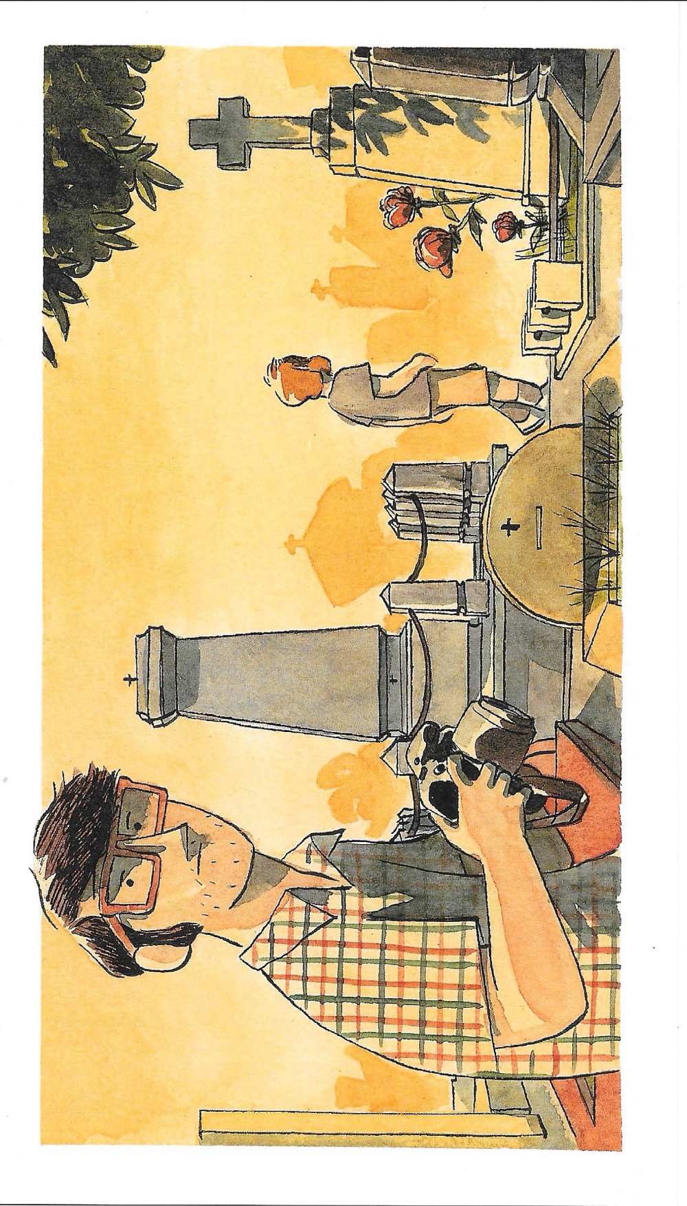 Pour son premier scénario, Clément C. Fabre, a choisi de se plonger dans son passé ou plutôt celui de sa famille. Sous prétexte de découvrir, avec son frère Robin, les lieux qui ont jalonné l'enfance stambouliote de leurs grands-parents, l'auteur de Salade, tomates, oignons propose un carnet de voyage un peu particulier. Dans une ville envoûtante en pleine agitation, la fratrie tente de reconstituer le fil d'une histoire personnelle qu'elle ne connait que peu. La narration entrecroise deux lignes temporelles : d'un côté, les recherches pour retrouver la tombe de cette tante décédée avant que leur mère naisse, et de l'autre, les souvenirs familiaux et les discussions entre les petits-enfants et leurs aïeux. Déroutant au début, avec des séquences qui se fondent dans la même planche, le procédé s'avère rapidement fluide et efficace. Les étapes du périple trouvent ainsi un écho dans les scènes et les échanges lors des préparatifs.