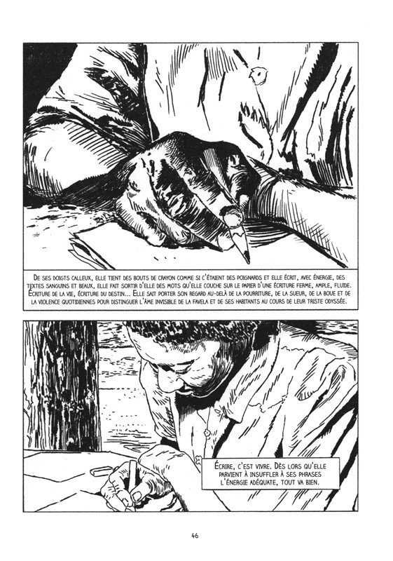 Carolina raconte le combat de cette femme noire, pauvre et mère de trois enfants, vivant dans la favela de Canindé, au nord de São Paulo. On y découvre sa renommée littéraire - le livre a été traduit en 14 langues étrangères et s'est vendu à 1 millions d'exemplaires dans le monde - puis son déclin, car très vite oubliée.