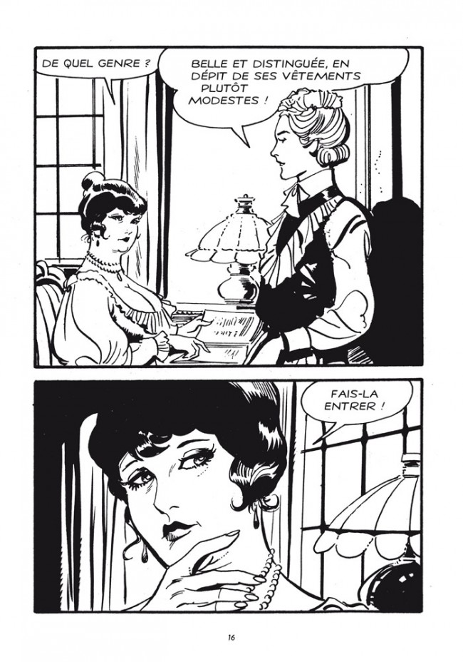 Leone Frollo a dessiné cette série de 1985 à 1987. Il relate l'histoire d'un bordel parisien, en s'inspirant du célèbre "one two two" . Dans un style très élégant, Frollo relate, le plus souvent sous une forme humoristique, et à travers de courtes histoires, les exploits des pensionnaires de Madame Georgette, tenancière du bordel. Un dessin épuré, sans décor, qui permet d'admirer les courbes de ces dames.... Outre ces pensionnaires, Frollo nous offre une belle galerie de portraits de la bourgeoisie du début du 20ème siècle, fréquentant les maisons closes. Même si certaines cases sont très explicites, je n'arrive pas à classer cette bande dessinée dans la catégorie "pornographique". Malgré ses 330 pages et à raisons de deux vignettes par page, ce petit pavé se lit un peu trop vite. C'est plaisant, élégant sans aucune trivialité, ni vulgarité, bref classieux .BDGest 2014 - Tous droits réservés