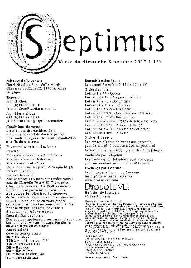 - Septimus - vente du 8 octobre 2017 - hôtel nivelles-sud
