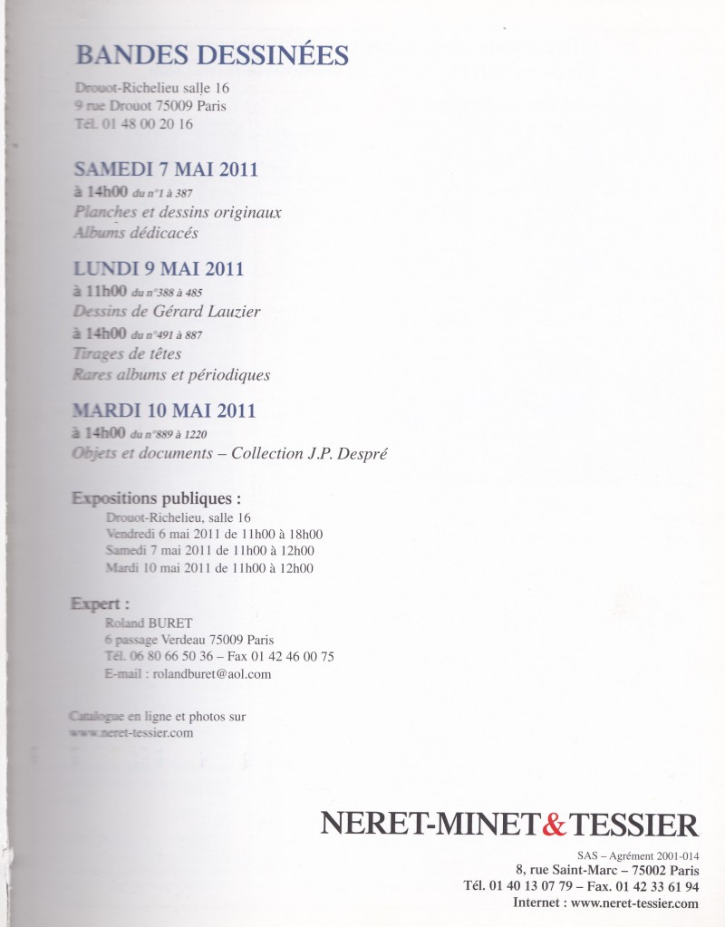 - Néret-Minet & Tessier - Bandes dessinées - 7, 9 et 10 mai 2011 - Paris Drouot