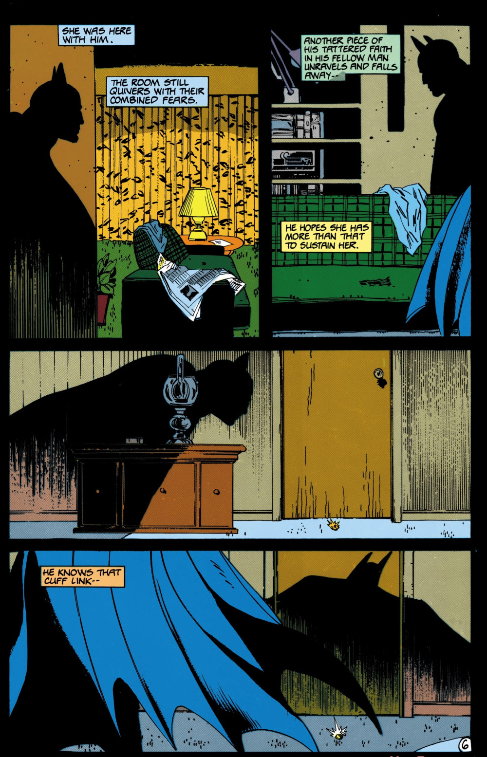 Elsewhere, Catwoman breaks into a fancy apartment and finds a former prostitute bathing in a large tub. Selina turns out the lights and then appears in the dark brandishing her sharpened claws. The girl quickly breaks, and Selina demands to know where Stan is. The girl fearfully responds that Stan may be in a supply depot for the F-Train, or he may be at Bruzinsky's Theatre, an old strip joint. Stealing the girl's jewels, Catwoman warns the girl to tell no one she was there, and then blows out the candle, leaving the girl in total darkness.