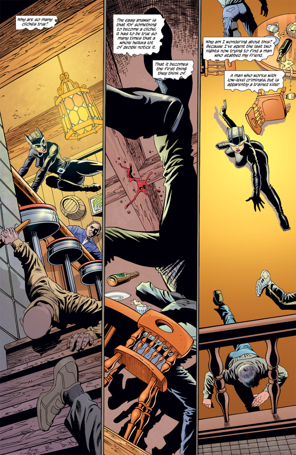 Résumé: Selina searches the streets looking for a lead on the man with the unusual goggles who stabbed Slam. Batman finds her and tells her that the man is Zeiss. Batman warns her to call him before fighting Zeiss. He believes Zeiis wants Selina to rush in angry as she's sloppy when she is angry. Selina knows he's right and is frustrated.