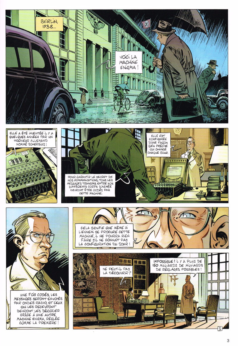 Bon, ce n'est pas mal mais pas extraordinaire non plus. nous avons en fait une mise en BD simplifiée du film Imitation game, Pacome prenant la place des autres scientifiques ayant travaillé à Bletchley Park. Difficile donc de souligner l'originalité du scénario. Et Turing et Pacome, aidés de Blair, triomphent finalement un peu vite. Un peu surpris par le grand nombre de critiques très positives.Le 02/02/2019 à 12:09:07