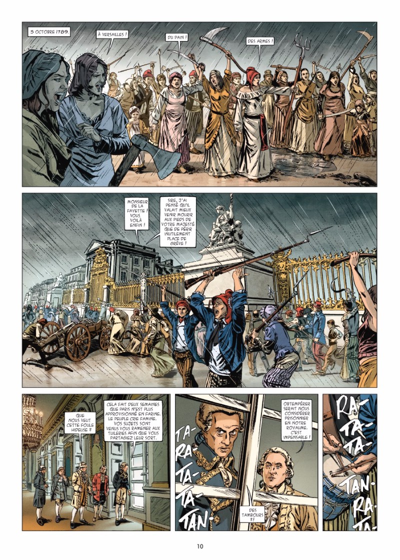 Ce premier tome évoque la bataille de Valmy, le 20 septembre 1792. Ce n’est pas l’aspect martial qui intéresse le scénariste, mais le contexte qui débouchera sur ce fait d’armes. De manière didactique, il décrit la chute de Louis XVI et les balbutiements de la République, se souciant des faits et non des personnages. C’est fort bien exécuté, mais de façon un peu froide. Il manque un soupçon d’émotion, de dramaturgie, bref d’enthousiasme. Malheureusement, ces ingrédients nécessaires à donner vie à cette page d’Histoire ne sont pas procurés par le dessin trop statique d’Emiliano Zarcone, ni par la colorisation assez terne de Dimitri Fogolin.