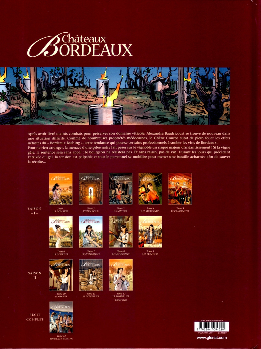 Châteaux-Bordeaux continue de nous plonger dans l'univers fascinant des vignobles et des châteaux du Bordelais, en mêlant habilement histoire, culture et intrigue. Il est vrai que les auteurs en remettent une couche quelques années après l'arrêt de la série. Visiblement, il y a eu des sollicitations pour continuer l'aventure. Ce nouvel opus nous invite toujours à explorer les coulisses du monde viticole, tout en maintenant ce fameux rythme captivant qui tient le lecteur en haleine. Corbeyran sait y faire incontestablement. L'illustration est une véritable réussite, avec des dessins soignés qui rendent justice à la beauté des paysages bordelais. le domaine est représenté avec précision, permettant au lecteur de ressentir l'atmosphère unique de cette région emblématique. Les couleurs vives et les détails minutieux ajoutent une dimension sensorielle à l'expérience de lecture. Le scénario est riche en rebondissements, avec des intrigues qui s'entrelacent habilement. Les personnages que l'on connait continuent d'évoluer et de se dévoiler, apportant une profondeur supplémentaire à l'histoire. Les interactions entre eux sont dynamiques et pleines de vie, renforçant l'attachement du lecteur envers ces protagonistes. Cependant, certains passages peuvent donner l'impression d'avoir une densité narrative élevée, ce qui pourrait dérouter les nouveaux lecteurs non familiarisés avec les tomes précédents. Cela dit, les fans de la série apprécieront sans doute les références. En conclusion, cela reste une lecture agréable pour les amateurs de bande dessinée et de viticulture. Avec son mélange de beauté visuelle, de richesse narrative et d'intrigues captivantes, ce tome saura séduire à la fois les passionnés de vin et ceux qui découvrent cet univers pour la première fois. Une oeuvre qui confirme la qualité de la série et qui promet de belles surprises pour les tomes à venir. L'éditeur a déjà commandé un 14ème tome à ce qu'il se dit.BDGest 2014 - Tous droits réservés