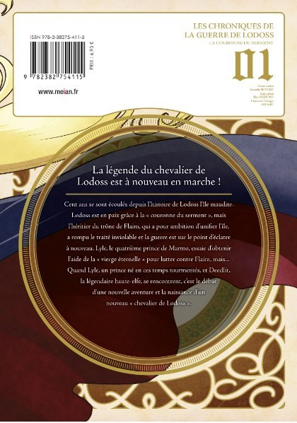 Résumé: Depuis l'histoire de Lodoss l'île maudite, cent ans se sont écoulés. Lodoss est en paix grâce à la « couronne du serment », mais l'héritier du trône de Flaim, qui a pour ambition d'unifier l'île, a rompu le traité inviolable et la guerre est sur le point d’éclater à nouveau. Lyle, le quatrième prince de Marmo, essaie d'obtenir l'aide de la « vierge éternelle » pour lutter contre Flaim, mais... Quand Lyle, un prince né en ces temps tourmentés, et Deedlit, la légendaire haute-elfe, se rencontrent, c'est le début d'une nouvelle aventure et la naissance d'un nouveau « chevalier de Lodoss ».