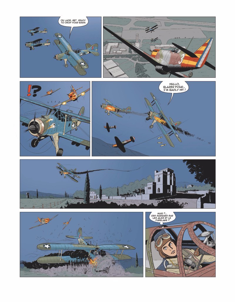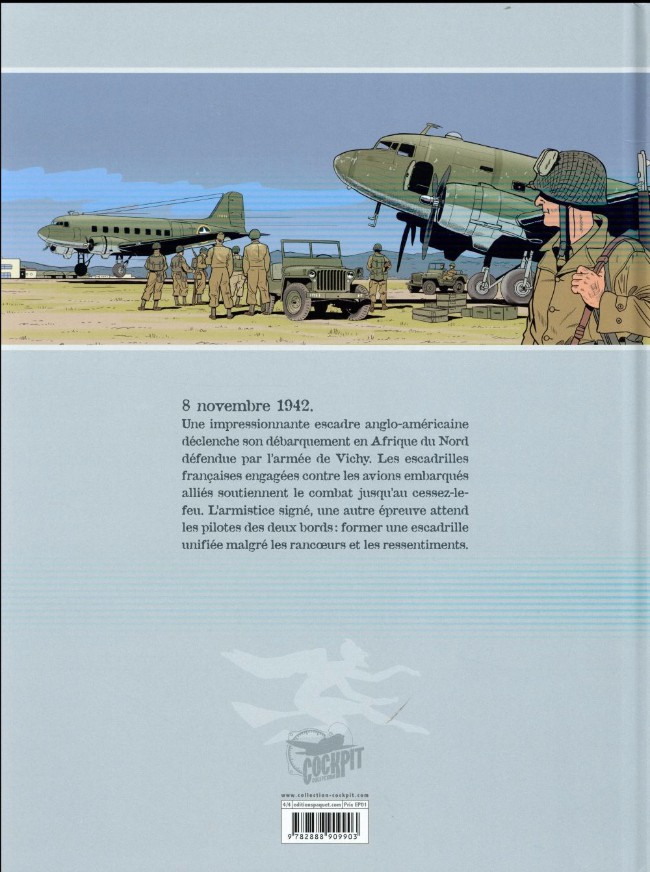 8 novembre 1942, opération Torch. Arrivée des Alliés en Afrique du Nord française. Ils prennent au dépourvu les forces fidèles à Vichy. C'en est fini de la neutralité américaine à l'égard de la France du maréchal Pétain. Les aviateurs français enfourchent leurs montures, du moins celles qui n'ont pas été détruites au sol, et affrontent les alliés. Les combats ne durent guère. Il va maintenant falloir fusionner ces pilotes vichystes avec ceux de la France libre… C'est loin d'être gagné… Critique : Excellente idée de porter les regards sur l'opération Torch, très méconnue, et qui pourtant va beaucoup aider à la mise au point d'Overlord, le 6 juin 1944 car c'est la première fois que les alliés effectuent des débarquements d'une telle ampleur. Mais ce n'est pas la préoccupation de l'auteur, Philippe Pinard, qui nous montre tout depuis le point de vue des pilotes français fidèles au maréchal Pétain. le scénario est souvent décousu et j'ignore quelle était l'intention de l'auteur avec la première et la dernière planche qui n'ont rien à voir avec l'Afrique du Nord. Une tentative d'idée géniale ? C'est raté… La grande force de cette BD, c'est la qualité du dessin et des couleurs d'Olivier Dauger. Ses avions, en particulier, sont d'une incroyable fidélité.Le 02/10/2016 à 23:17:38