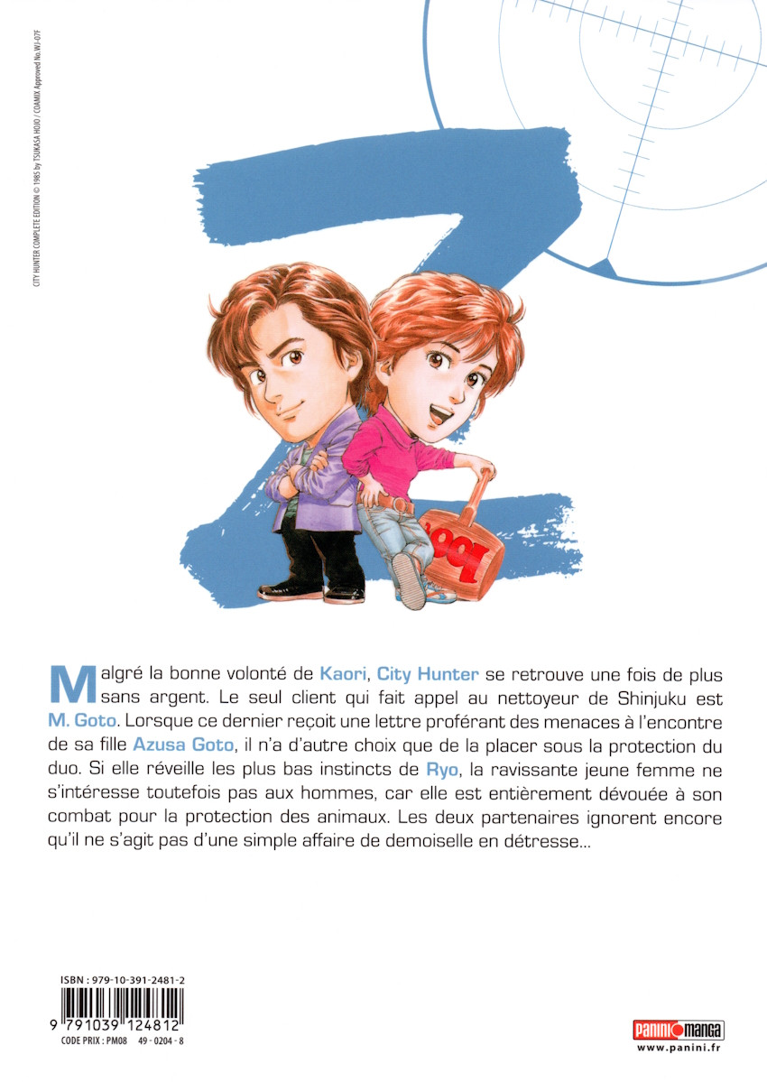 Résumé: Malgré la bonne volonté de Kaori, City Hunter se retrouve une fois de plus sans argent. Le seul client qui fait appel au nettoyeur de Shinjuku est M. Goto. Lorsque ce dernier reçoit une lettre proférant des menaces à l'encontre de sa fille Azusa Goto, il n'a d'autre choix que de la placer sous la protection du duo. Si elle réveille les plus bas instincts de Ryo, la ravissante jeune femme ne s'intéresse toutefois pas aux hommes, car elle est entièrement dévouée à son combat pour la protection des animaux. Les deux partenaires ignorent encore qu'il ne s'agit pas d'une simple affaire de demoiselle en détresse...