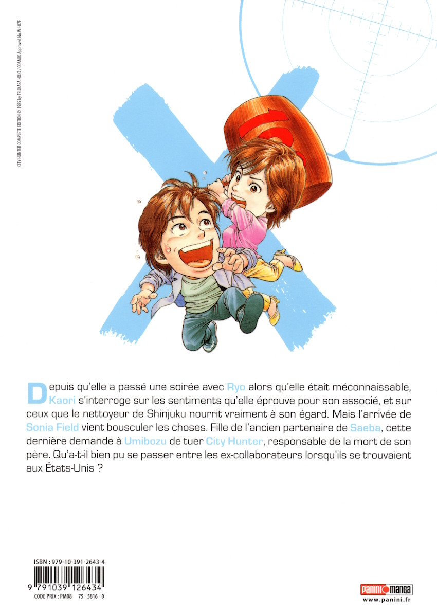 Résumé: Depuis qu'elle a passé une soirée avec Ryo alors qu'elle était méconnaissable, Kaori s'interroge sur les sentiments qu'elle éprouve pour son associé, et sur ceux que le nettoyeur de Shinjuku nourrit vraiment à son égard. Mais l'arrivée de Sonia Field vient bousculer les choses. Fille de l'ancien partenaire de Saeba, cette dernière demande à Umibozu de tuer City Hunter, responsable de la mort de son père. Qu'a-t-il bien pu se passer entre les ex-collaborateurs lorsqu'ils se trouvaient aux Etats-Unis ?