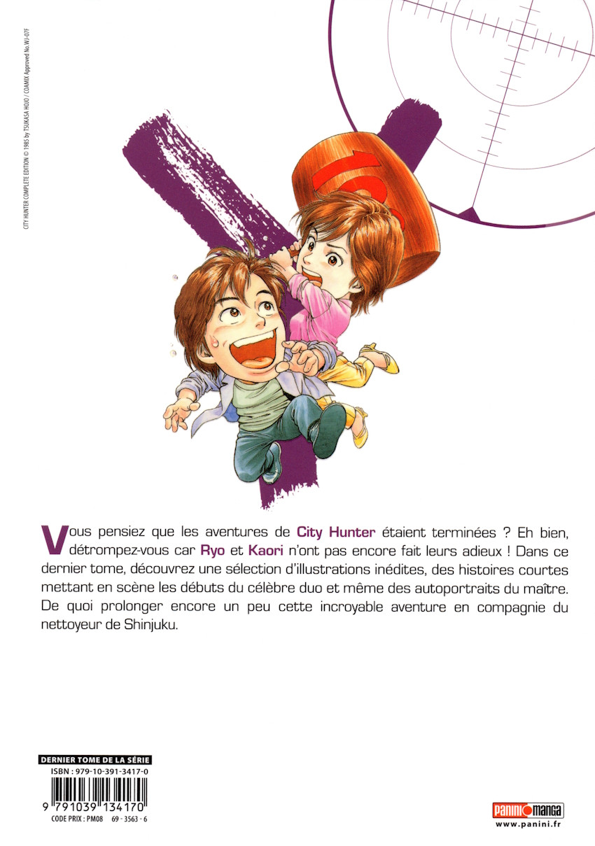 Résumé: Vous pensiez que les aventures de City Hunter étaient finies ? Eh bien non ! Ryo et Kaori n'ont pas encore fait leurs adieux. Découvrez, dans ce dernier tome, un ensemble d'illustrations et d'histoires courtes montrant les débuts de notre duo. Vous trouverez même un autoportrait de Tsukasa Hojo ! Un acte final qui prolonge, encore un peu, cette incroyable aventure en compagnie du nettoyeur de Shinjuku.