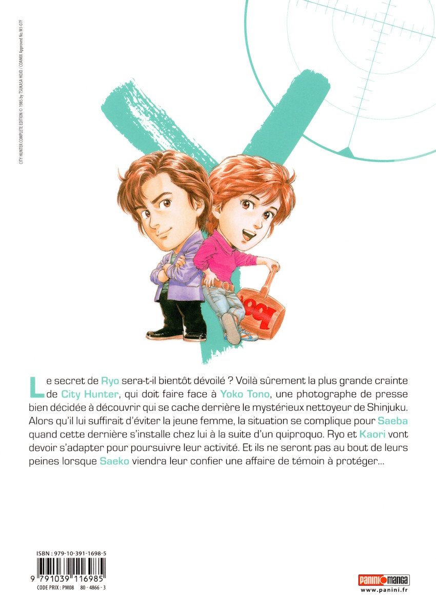Info édition : Avec jaquette illustrée dotée d'un vernis sélectif, sens de lecture d'origine (droite vers gauche). Plusieurs pages en couleurs et une part des planches en bichromie rouge/noir. Contient en préambule une galerie d'illustration de 4 pages, les épisodes 141 à 162 de la série, ainsi qu'en fin d'album un bonus de 2 pages intitulé "Le test de personnalité pour devenir l'assistante de City Hunter". Format 210 x 150 mm.