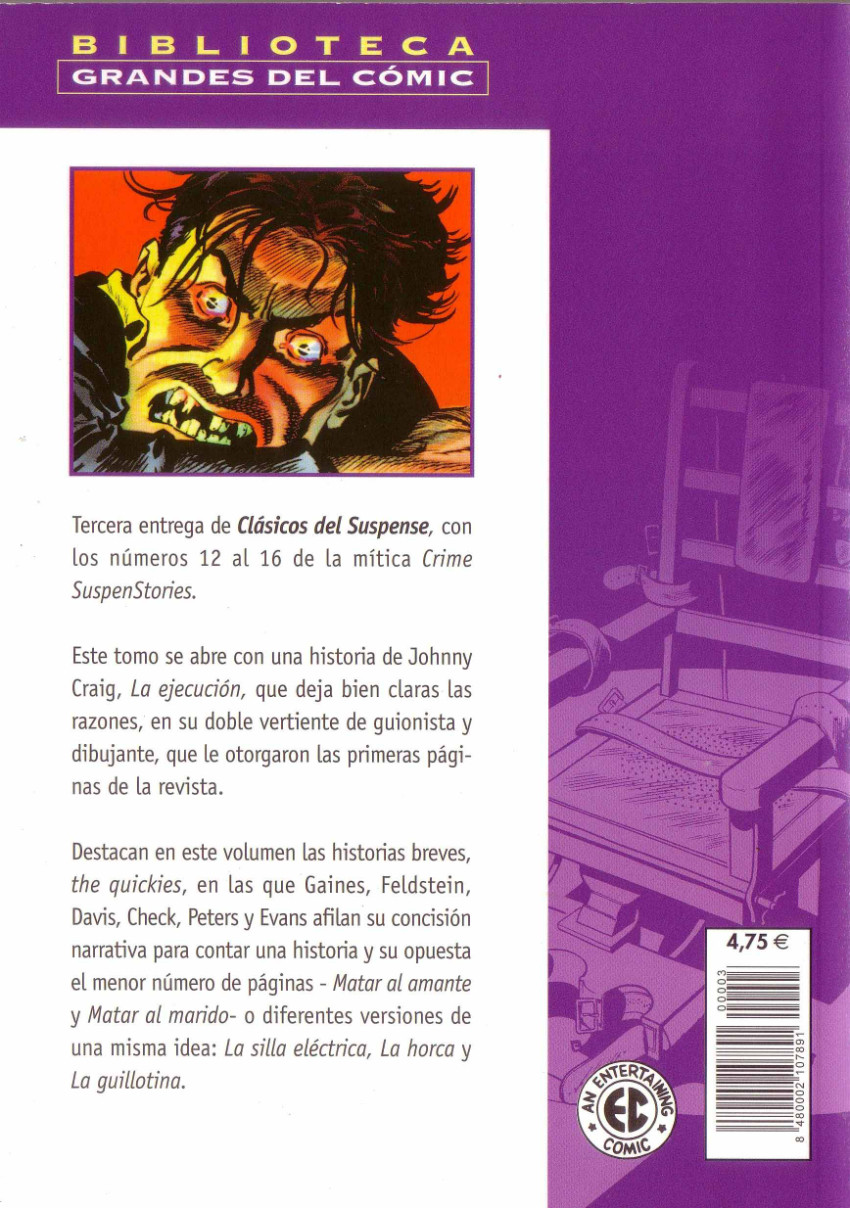 - Info édition : Contenido V.O: Crime Suspenstories #12 (agosto/septiembre 1952), Crime Suspenstories #13 (octubre/noviembre 1952), Crime Suspenstories #14 (diciembre 1952/enero 1953), Crime Suspenstories #15 (febrero/marzo 1953), Crime Suspenstories #16 (abril/mayo 1953)