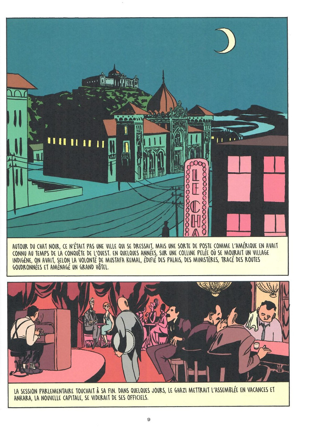Ces mots, lâchés en fin d'album dans un salon feutré, résument bien l'histoire de Nouchi et Jonsac, voire, à tout prendre, l'œuvre entière de Simenon. Souvent, dans les romans de l'écrivain belge, les décors et les personnages ont bien plus d'importance que l'intrigue. La fin n'en est pas vraiment une. Tout reste flou. Cela, Fromental l'a bien compris, lui qui relègue ses héros au rang de spectateurs. Et Mattiussi également, elle qui, loin des ambiances brumeuses généralement associées aux enquêtes de Maigret, s'empare avec volupté de la Turquie et de sa chaleur.