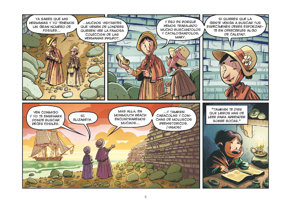 Résumé: Mary Anning de pequeña acompañaba a su padre a recoger fósiles en las escarpadas costas de Lyme Regis, en el sur de Inglaterra. De esta pasión convertida luego en profesión surgieron hallazgos que fueron esenciales para la evolución de la entonces incipiente disciplina de la Paleontología. Aunque la mayor parte de las veces su labor fue silenciada por la comunidad científica de su época, sus descubrimientos ayudaron a asentar la idea de que el mundo tenía millones de años de antigüedad y que criaturas desconocidas y extrañas lo habitaron mucho antes de que la Humanidad apareciera.
