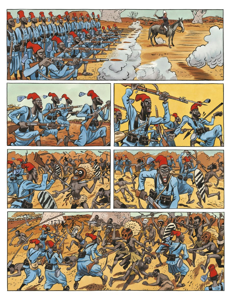 Ce n'est pas que l'histoire est sordide... Euh... si... c'est que l'histoire est sordide : les Français, conquérant l'Afrique d'ouest en est, recrutent des tirailleurs sénégalais pour parcourir le territoire et s'enfoncer sur le continent.