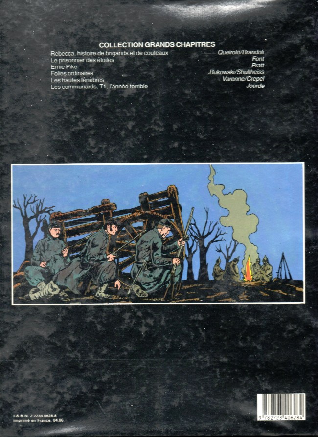 - Info édition : Au 1er plat, "Logo – éditions Glénat" centré en bas de page. Noté page 2 : © 1986 Editions Jacques Glénat, BP 177 38008 Grenoble Cedex. Noté page 96 : Achevé d'imprimer par Pollina à Luçon – N° 7889 – Dépôt légal : Mars 1986. Au 4e plat, noté : Collection Grands Chapitres, liste de 6 titres et auteurs divers dont le dernier "Les communards, T1. L'année terrible – Jourde", en bas à gauche ISBN 2–7234-0628-8, imprimé en France 04.86, et code-barres à droite.