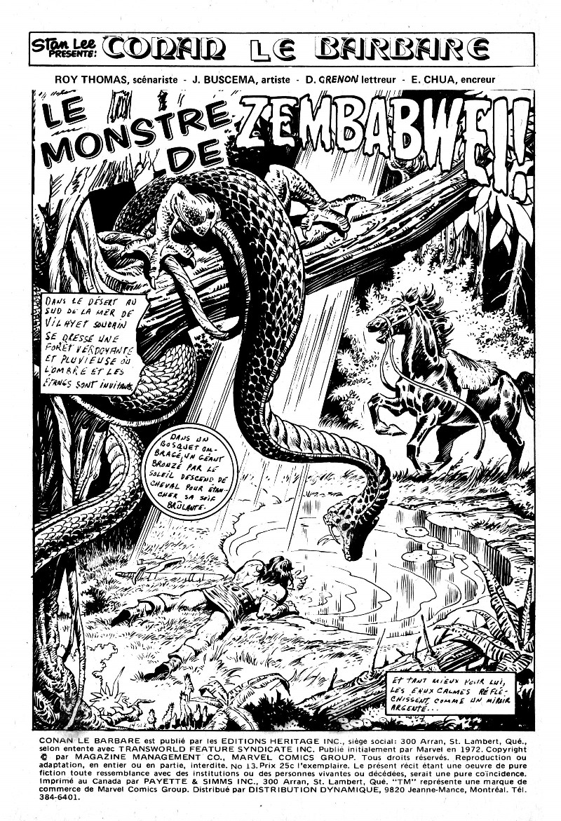 Conan le barbare (Éditions Héritage) -13- Le monstre de Zembabwei!