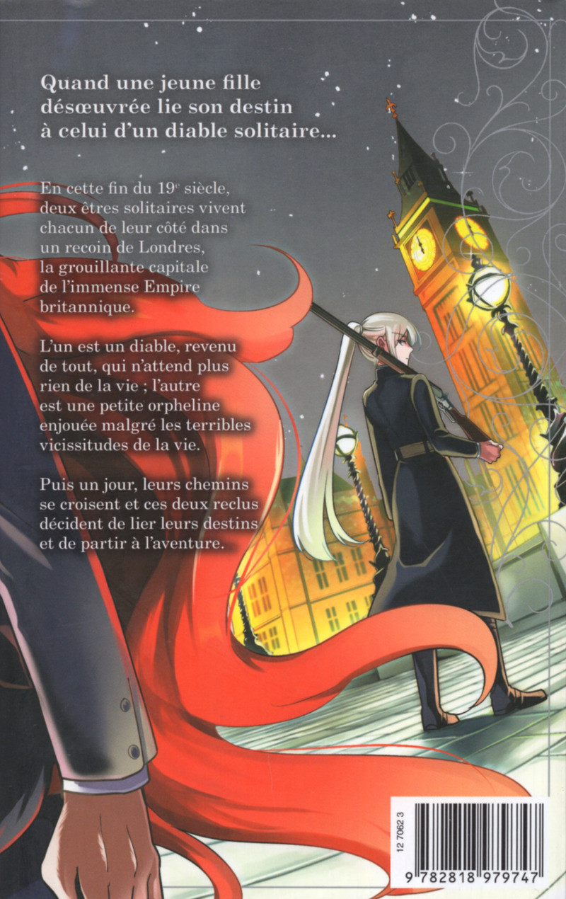 Résumé: Quand une jeune fille désoeuvrée lie son destin à celui d'un diable solitaire... En cette fin du 19e siècle, deux êtres solitaires vivent chacun de leur côté dans un recoin de Londres, la grouillante capitale de l'immense Empire britannique. L'un est un diable, revenu de tout, qui n'attend plus rien de la vie ; l'autre est une petite orpheline enjouée malgré les terribles vicissitudes la vie. Puis un jour, leurs chemins se croisent et ces deux reclus décident de lier leurs destins et de partir à l'aventure... Ne manquez pas le récit d'une amitié hors du commun, dans un shônen fantastique et élégant en plein coeur de l'époque victorienne.