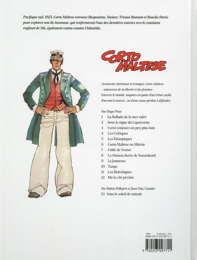 Résumé: Aventurier élégant et ironique, Corto Maltese - amoureux de sa liberté et des femmes - traverse le monde, toujours en quête d'un trésor caché, d'un ami à sauver... ou d'une cause perdue à défendre. Pacifique sud, 1925. Corto Maltese retrouve Raspoutine, Steiner, Tristan Bantam et Bouche Dorée pour explorer une île inconnue, qui renfermerait l'une des dernières entrées vers le continent englouti de Mu, également connu comme l'Atlantide. Nouvelle édition en couleurs.