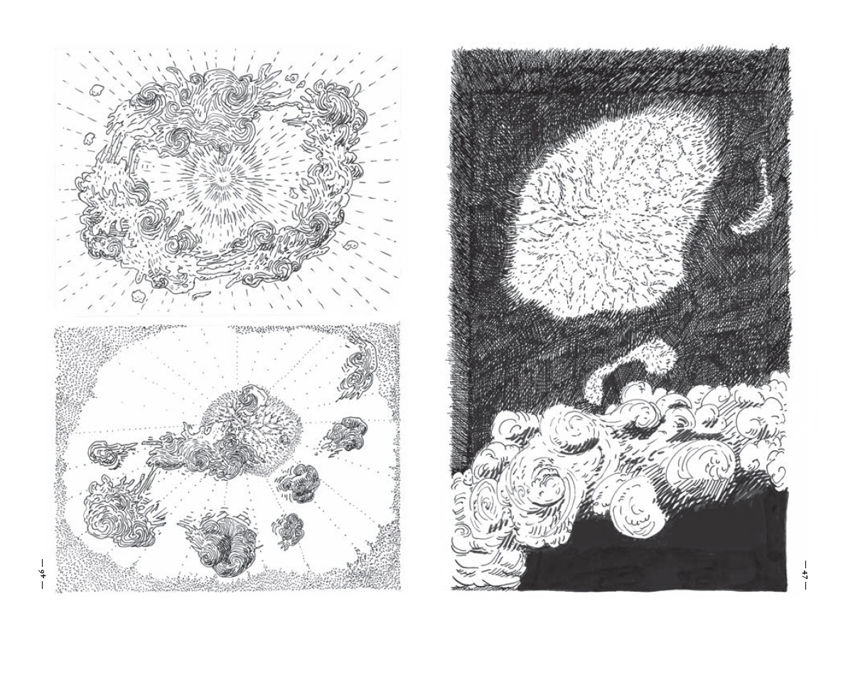 l faut toujours relire les classiques, c’est certainement cette saine maxime qui a guidé Hyacinthus (modeste pseudonyme choisi par Yacine Gouaref) pour imaginer et mettre en images Les Cosmogoniales. En cinq parties pour autant de règnes, il narre des genèses en se basant sur des extraits de textes grecs et latins. L’entreprise est ambitieuse et poétique, malgré un côté un peu artificiel. En effet, judicieusement choisis et organisés, il est aisé de faire dire ce que l’on veut aux mots, surtout quand leur contexte historique date d’il y a plus de deux mille ans.