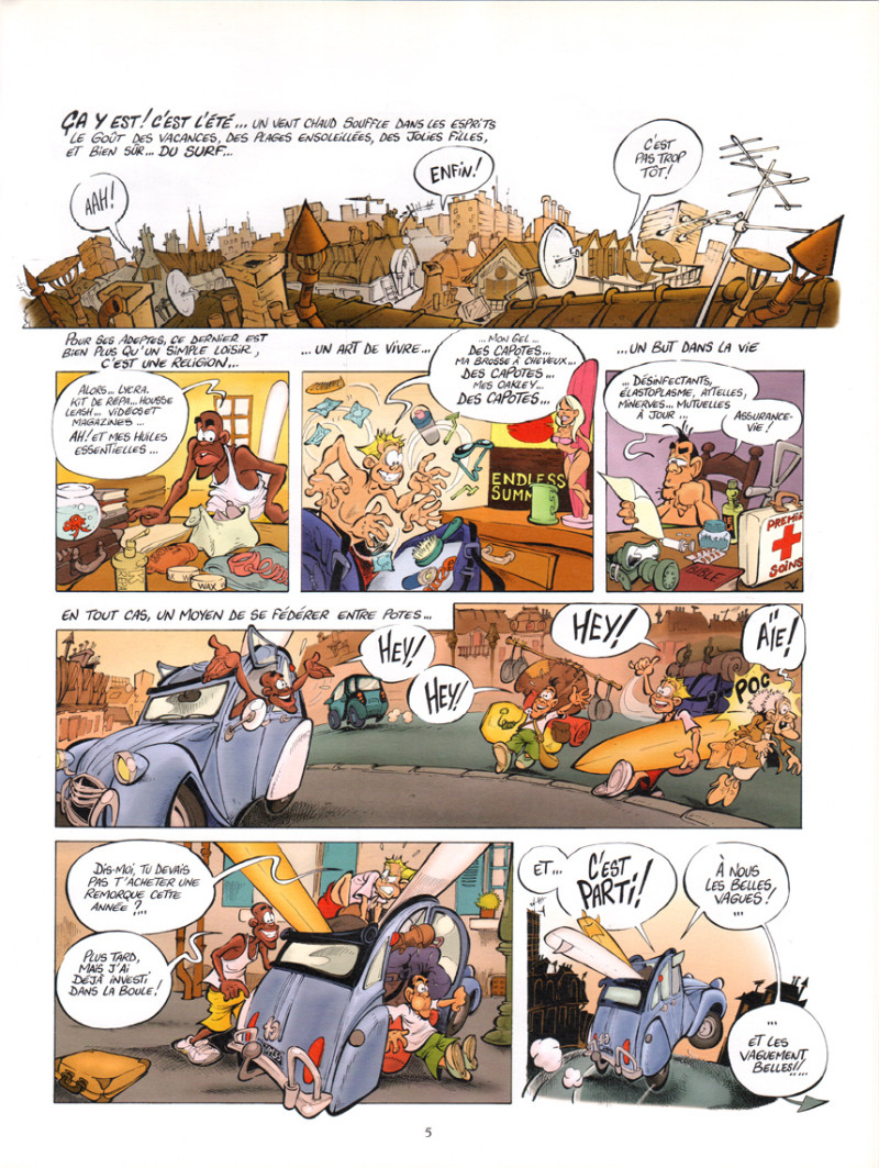 Résumé: Ca y est ! C'est l'été. Un vent chaud souffle sur les esprits. Les vacances, le soleil, les jolies filles, et bien sûr le surf et ses Crazy Trips ! Plus qu'un loisir, pour ses adeptes c'est une religion, une passion ! En théorie... car en pratique, le tableau est légèrement moins idyllique : lourdingues et fauchés, les surfeurs passent plus de temps à se vautrer en de magnifiques gamelles qu'à faire les fiers-à-bras sur les rouleaux déchaînés de spots d'enfer !