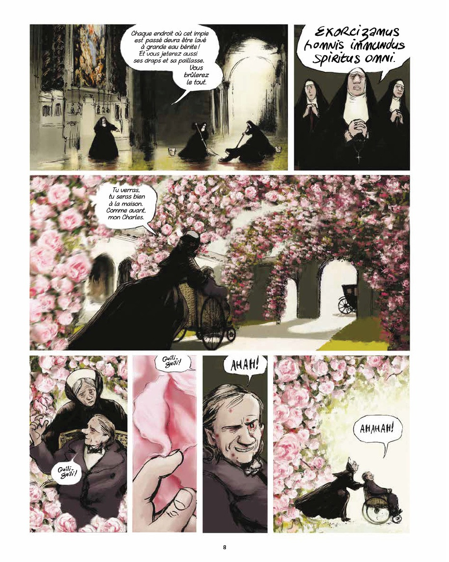 J'ai adoré cette nouvelle biographie sur Charles Baudelaire, l'auteur des fleurs du mal. Il est vrai que j'ai toujours aimé ce poète maudit dans son aspiration pour la perfection. On va être gâté dans ce récit qui ira de dépravation en dépravation avec un côté assez obscène et souvent assez immoral. C'est un jeune dandy qui n'a jamais connu le travail et qui dépense sans compter pour satisfaire toutes ses envies et lubies. Pour autant, il va avoir un talent assez monstrueux pour la prose de vers en réinventant la poésie la poussant vers la modernité. Bref, on sait que les génies peuvent très mal se comporter dans la vie privée et en société. Il est surtout question de son rapport avec les femmes. Tout d’abord sa mère qui fut sa déesse adorée avant l'abandon pour un nouveau mari puis une certaine forme de haine bien que le respect soit toujours présent. Il y aura également cette femme maigre et moche d'origine juive tiré d'un bordel mais surtout Jeanne Duval, une belle amante noire qui sera sa muse. A noter que dans cette œuvre, il étrangle à main nue une de ses femmes sans jamais être inquiété par ailleurs. Le fameux poème « le vin de l'assassin » décrit d'ailleurs très bien ce féminicide. On a toujours supposé que Baudelaire s'est inspiré d'un fait réel mais jamais qu'il avait concouru à l'acte sous l'emprise de l'alcool. Cette BD va franchir quelques limites assez scabreuses. On découvrira également qu'à l'âge de 22 ans, le poète tombé dans l'alcool et criblé de dettes a tenté de se tuer d'un coup de couteau. Evidemment, on va retrouver tous les thèmes chères à l'auteur à savoir l'angoisse existentielle, la souffrance, la déchéance et la mort. Solitude, maladie et dépression seront au programme. Bref, il va falloir s'accrocher et ne pas tomber dans le jugement moral. Âmes sensibles s'abstenir car le sordide n'es pas loin entre pratique sado-maso et débauche. On comprend tout de même que Baudelaire cherche à extraire la beauté du mal par le travail poétique afin de dépasser la souffrance propre à l'âme humaine. Cependant, ses excentricités dans une vie de bohème ne seront pas très bien comprises par les mortels. On est souvent proche du scandale dans un délit d'outrage à la morale publique et aux bonnes mœurs. C'est le regretté Jean Teulé qui laisse cette œuvre magnifique adaptée par Dominique et Tino Gelli et qui se poursuivra sur trois tomes. A noter que graphiquement, c'est admirablement accompli dans les traits du dessin. On aura même droit à un bel écrin ainsi qu'une magnifique couverture. Mon seul bémol proviendra du fait que je n'ai pas reconnu le visage pourtant familier de Baudelaire. Bref, un portrait certainement fidèle à ce qu'a été ce poète torturé dans le Paris de la Monarchie de Juillet puis de la Seconde République mais cela va sans doute provoquer du dégoût. C'est sans doute une autre vision plus réaliste pour bien comprendre le génie de son œuvre.Le 05/09/2023 à 10:49:58