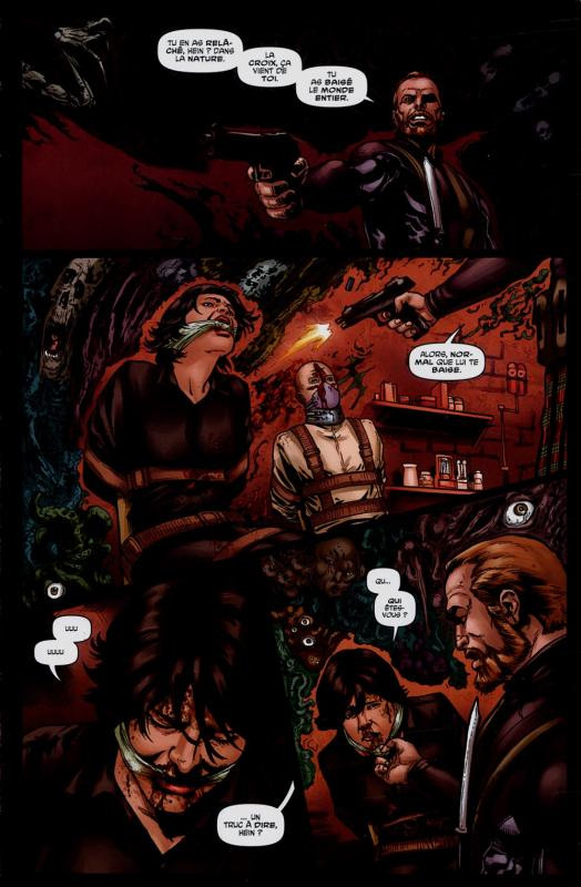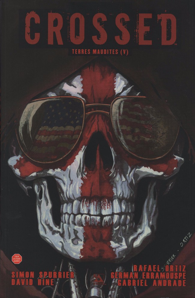 Info édition : Album à couverture à rabats, contenant trois histoires, "Dégonflés" (par Spurrier et Ortiz, traduction des épisodes US "Crossed: Badlands" #37-39), "Gore Angels" (par Hine, Erramouspe et Heinz, traduction des épisodes US "Crossed: Badlands" #40-43) et "Le Grand Yin" (par Spurrier et Andrade, traduction de "Crossed 2013 Annual").