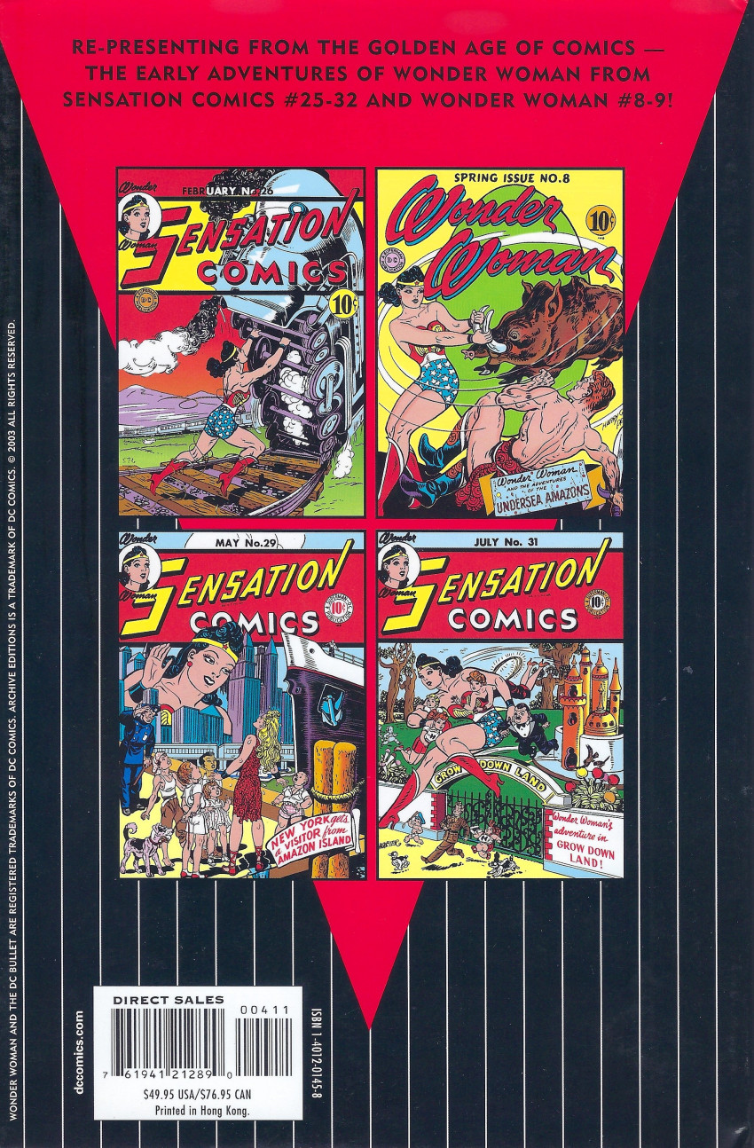 A new Archive collecting the greatest stories of one of comics' true icons! This hardcover reprints stories from SENSATION COMICS #25-32 and WONDER WOMAN #8-9 (1944) and features an introduction by Comics Buyers Guide's Maggie Thompson.