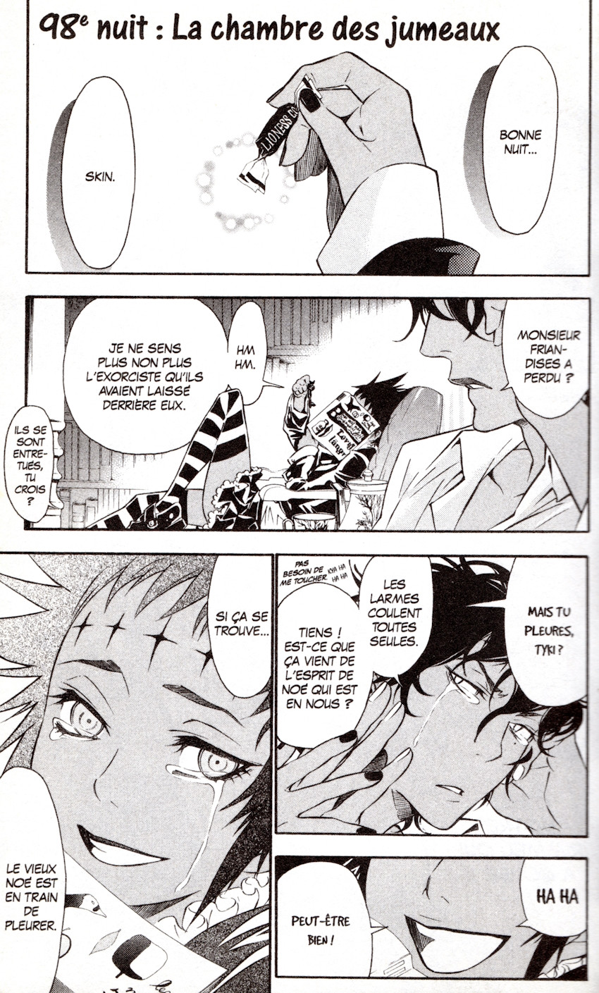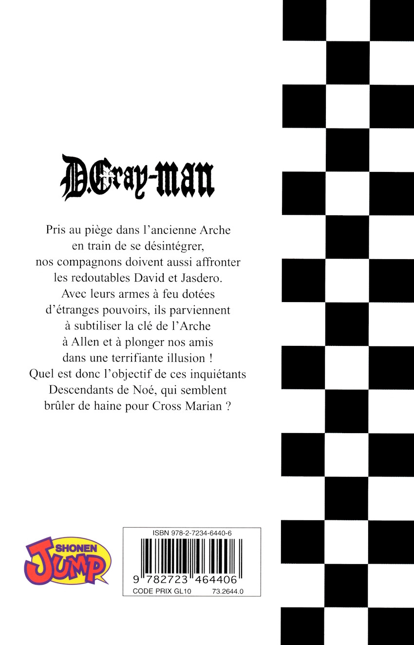 Résumé: Le monde est sous la coupe d'entités maléfiques, issues des expériences scientifiques d'un génie malfaisant, le Comte Millénaire. Seule une lignée d'exorcistes spécialement entraînés semble être en mesure de combattre ces créatures qui s'attaquent aux humains. Allen Walker est l'un d'entre eux, et fait partie des plus jeunes recrues. Mais ses extraordinaires pouvoirs trahissent aussi un terrible secret : pourquoi sa main gauche est-elle celle d'un démon ? Quelle est cette cicatrice qui le défigure, et quel lien possède-t-il avec le Comte ? Série d'aventure fantastique et horrifique, D.Gray-Manest déjà considéré comme un classique par les amateurs du genre. La noirceur de son univers, la tristesse de ses histoires, la grande différence de force entre les « méchants » et les « bons » (qui sont complètement dépassés) font de ce titre étonnant une oeuvre à part, loin des histoires guillerettes et joyeuses qu'on trouve habituellement dans les séries pour ados.