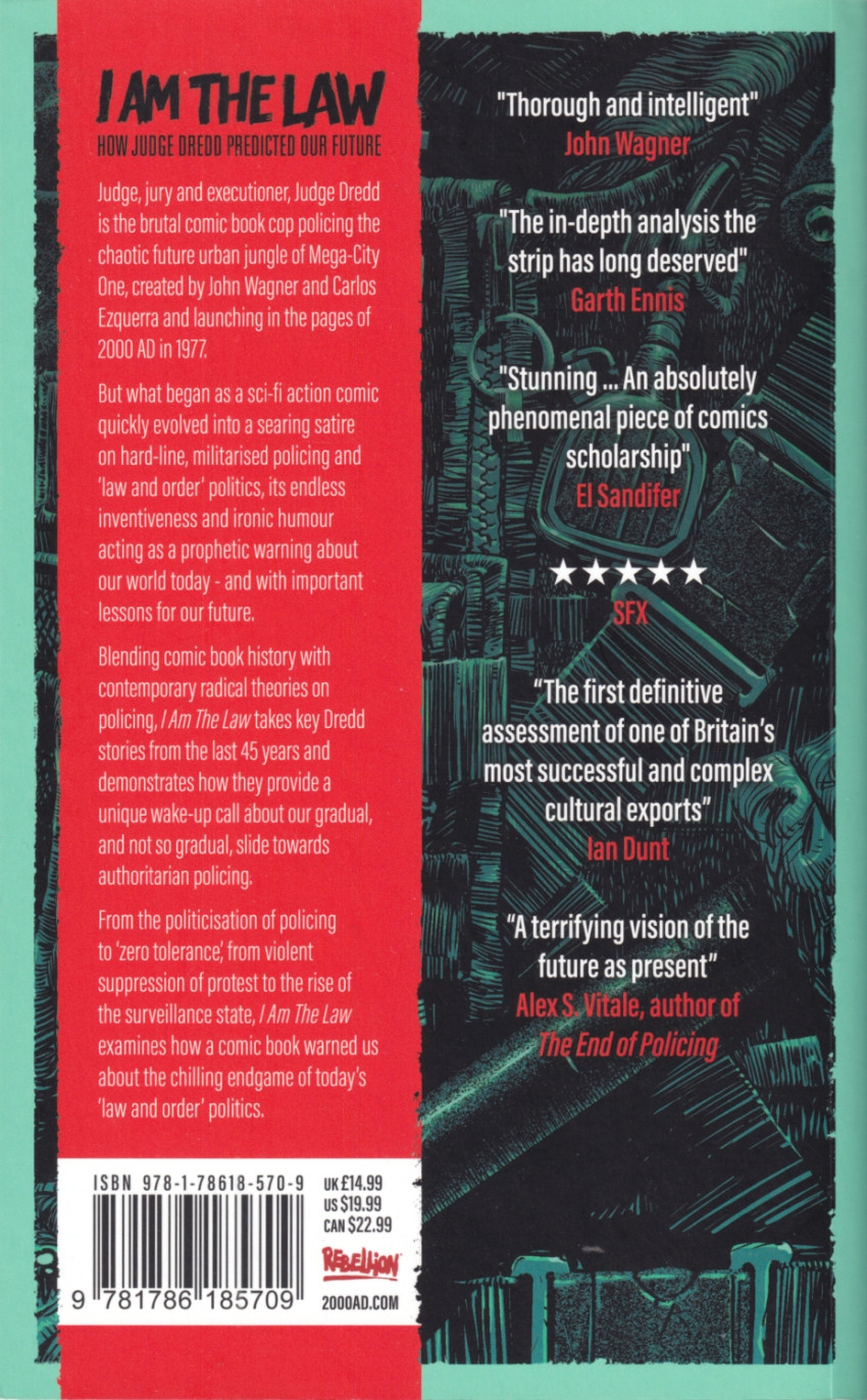 Blending comic book history with contemporary radical theories on policing, I Am The Law takes key Dredd stories from the last 45 years and demonstrates how they provide a unique wake up call about our gradual, and not so gradual, slide towards authoritarian policing.